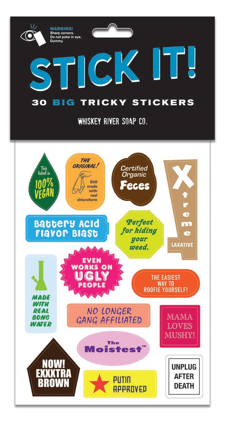 Two 8-sticker sheets with header card, size: 5″ × 9 ½″. Full-color. Sold in 8-packs.
