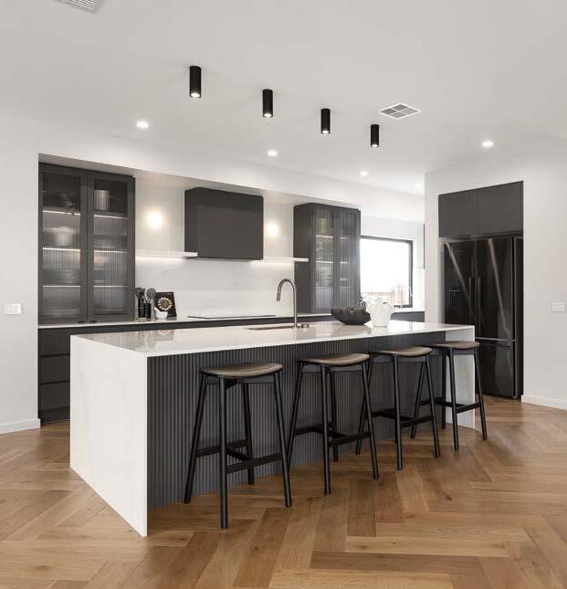 40mm aris edge Caesarstone® (silica free) benchtops from Builder’s Category 1 range to island bench only with 300mm bench overhang (1000mm wide Island benchtops).