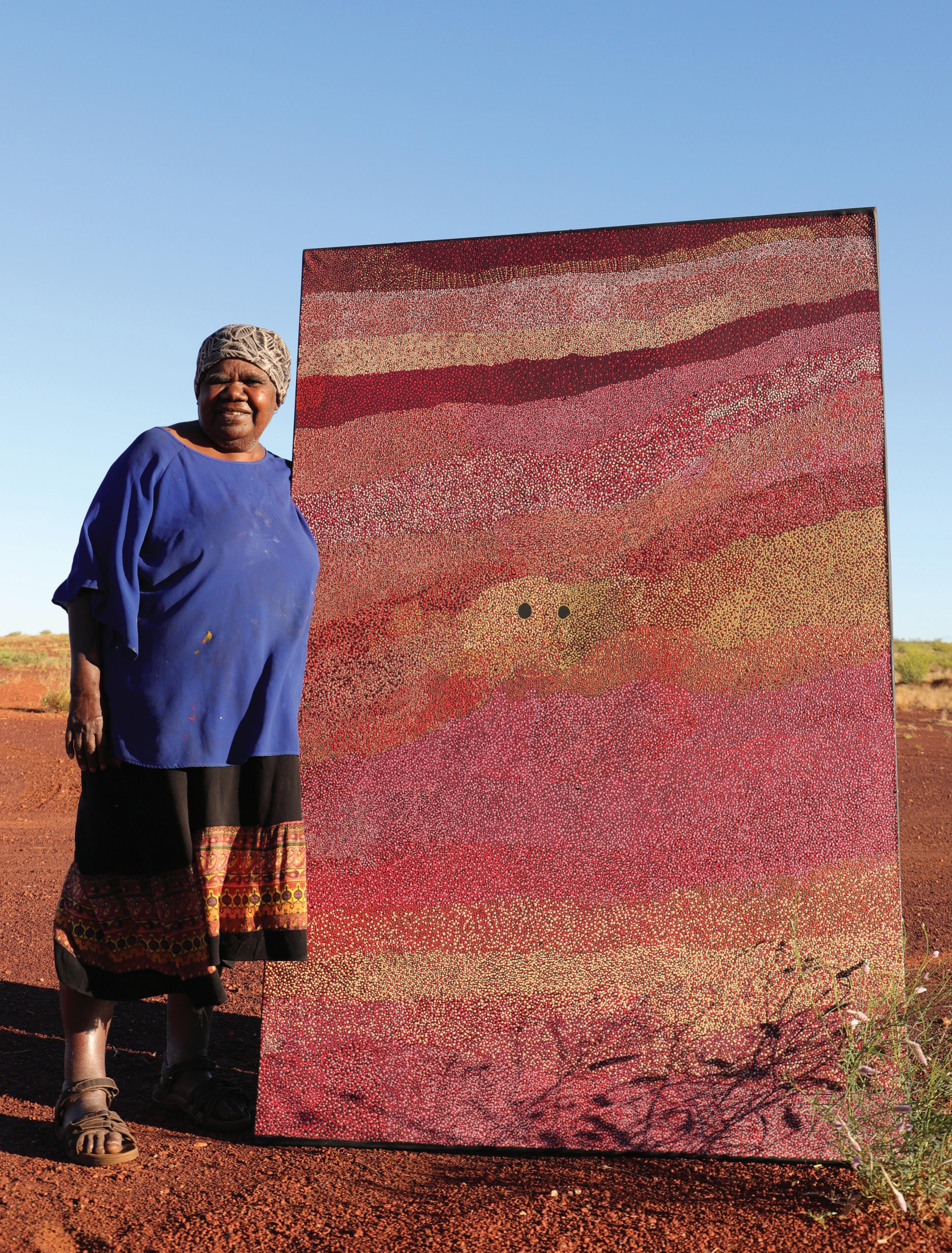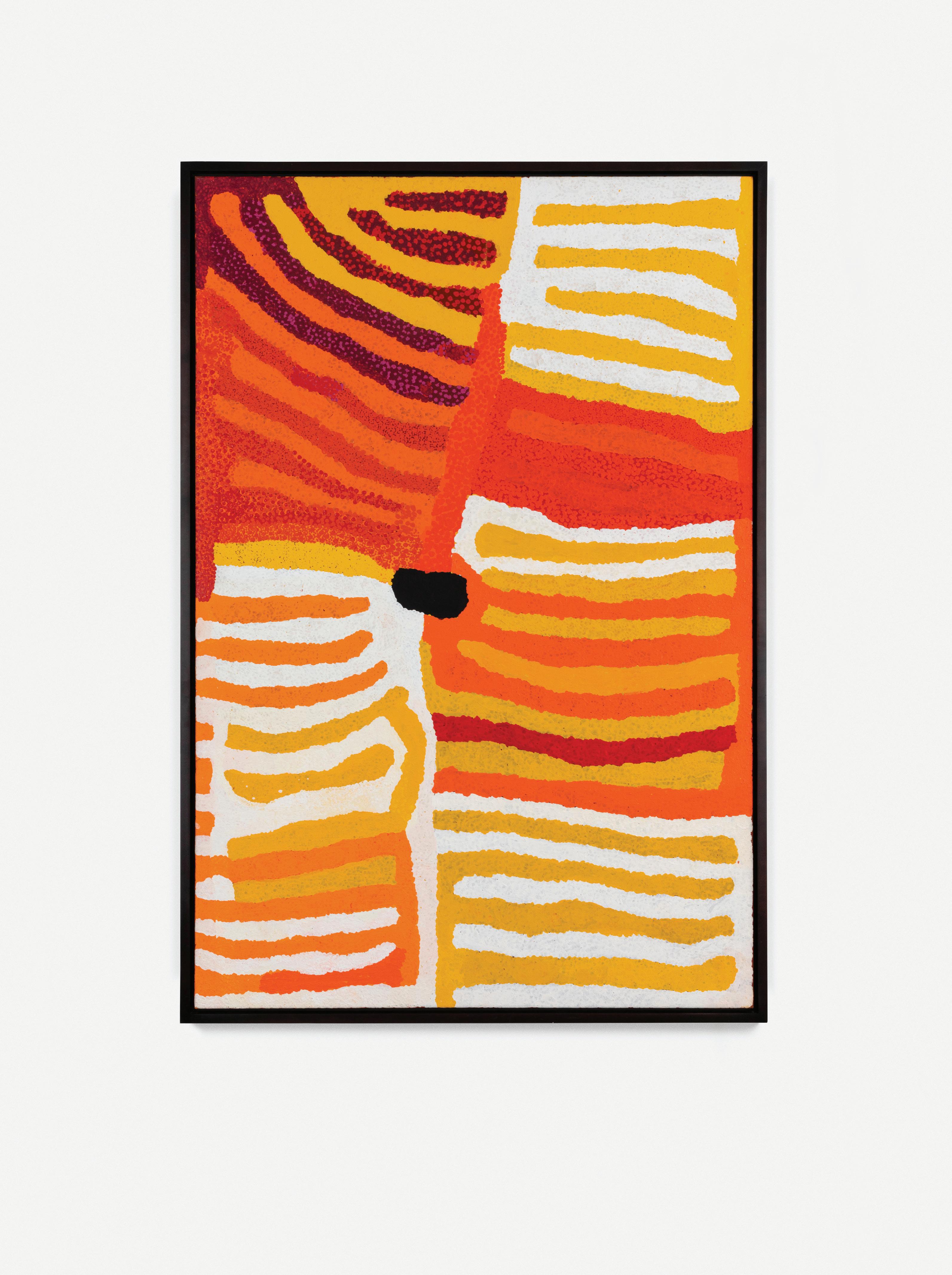 Following page: Lucy Napanangka Yukenbarri, Marpa 01 2002, acrylic on canvas, 179.5cm x 119.5cm. Image courtesy of Sergey Novikov.