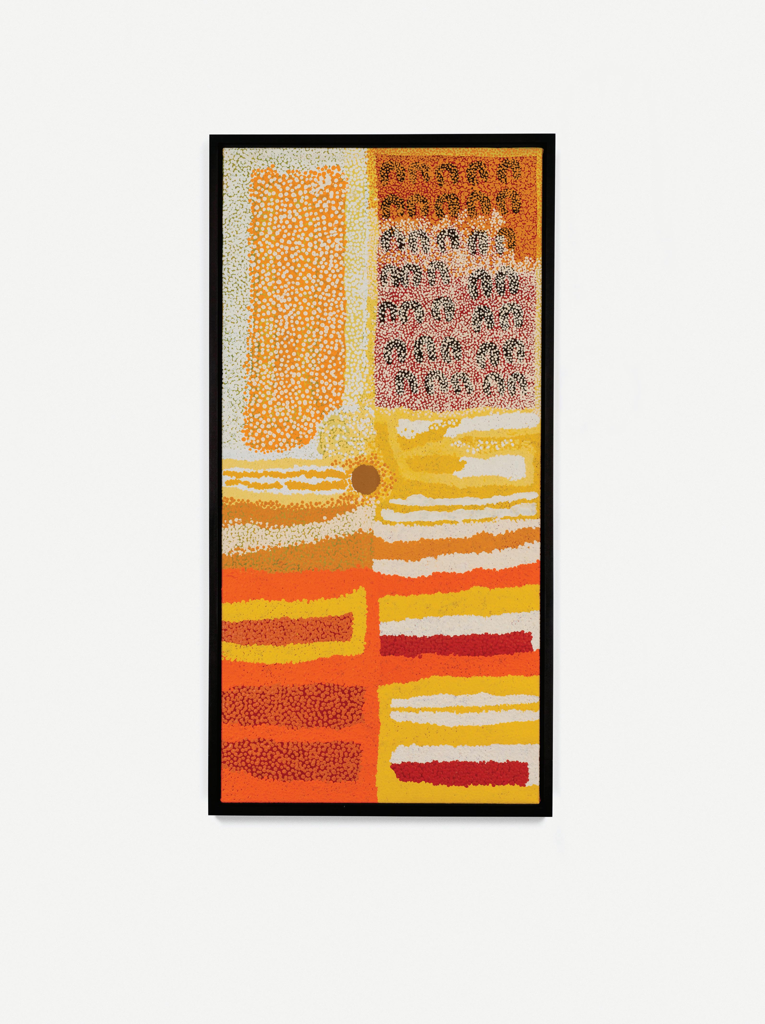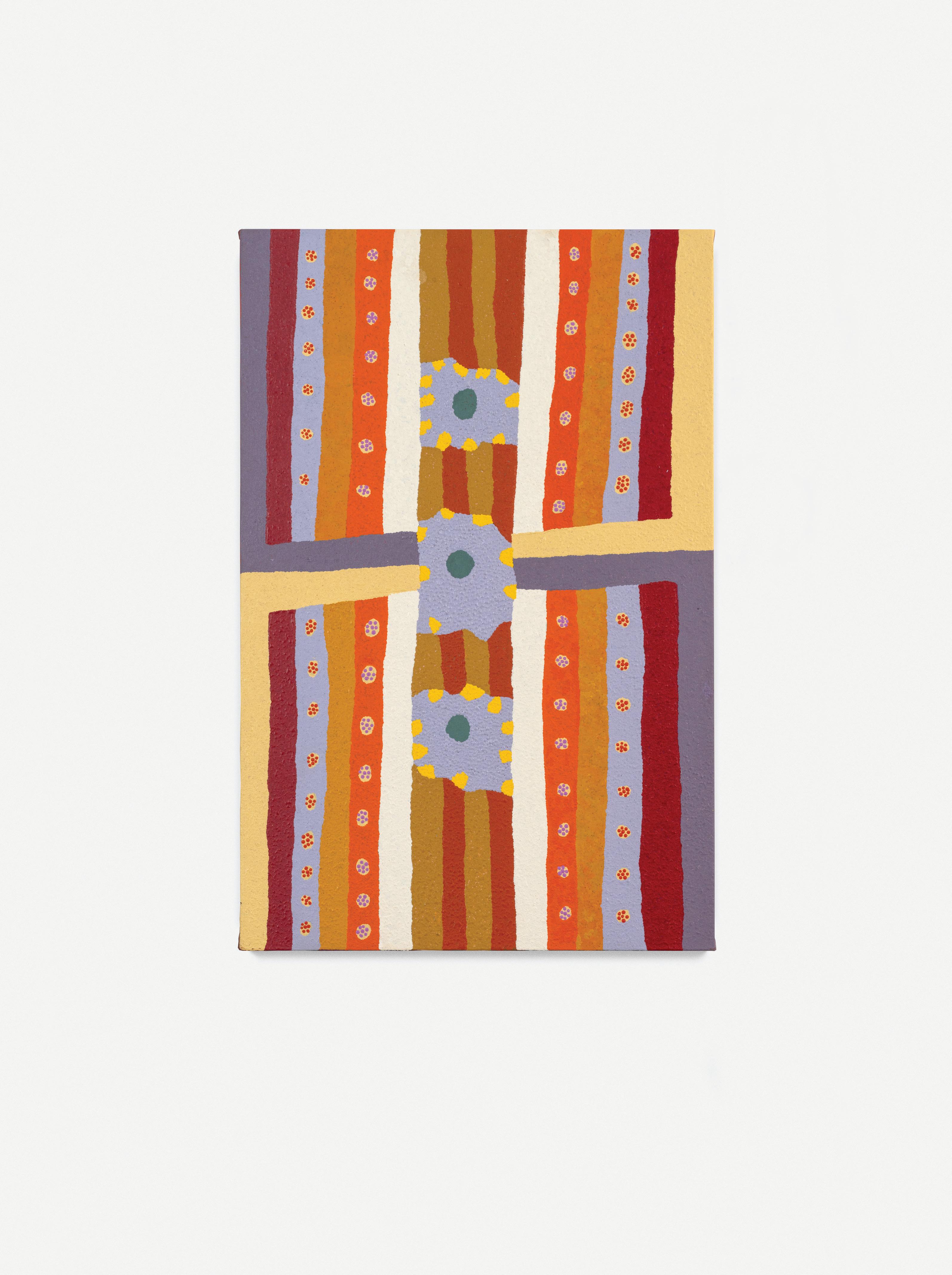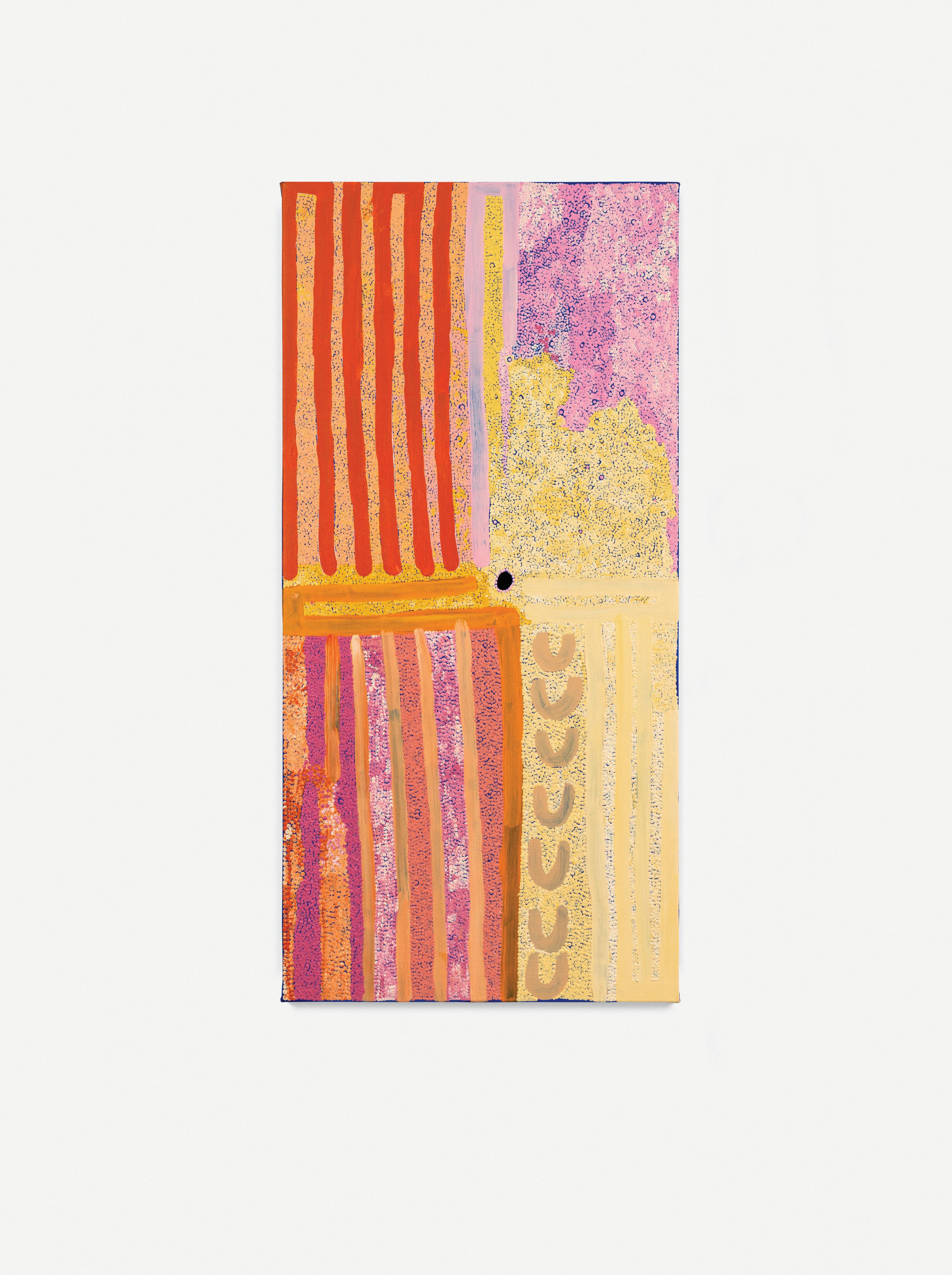 Imelda Gugaman Yukenbarri, Winpurpurla (Bushtucker) II, 2024, acrylic on canvas, 121.5cm x 60.5cm