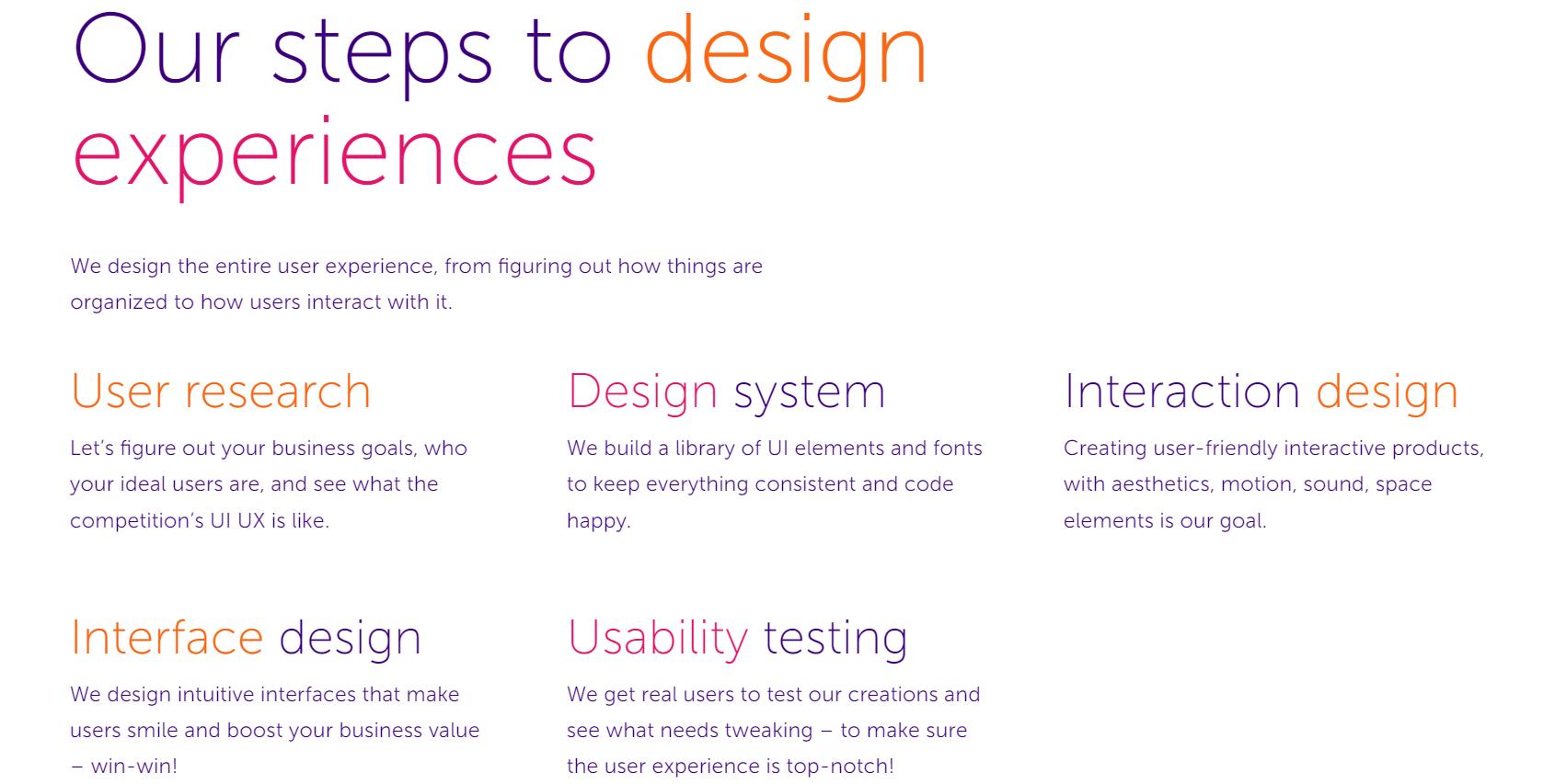 We specialize in crafting intuitive and engaging user experiences that make your apps and websites stand out. Our services include UI/UX consulting, mobile and web design, interaction design, visual design, and design testing. We follow a comprehensive process involving user research, design systems, interaction and interface design, and usability testing to ensure top-notch user experiences. Our goal is to create usable, consistent, and personalized products that enhance user engagement and retention.