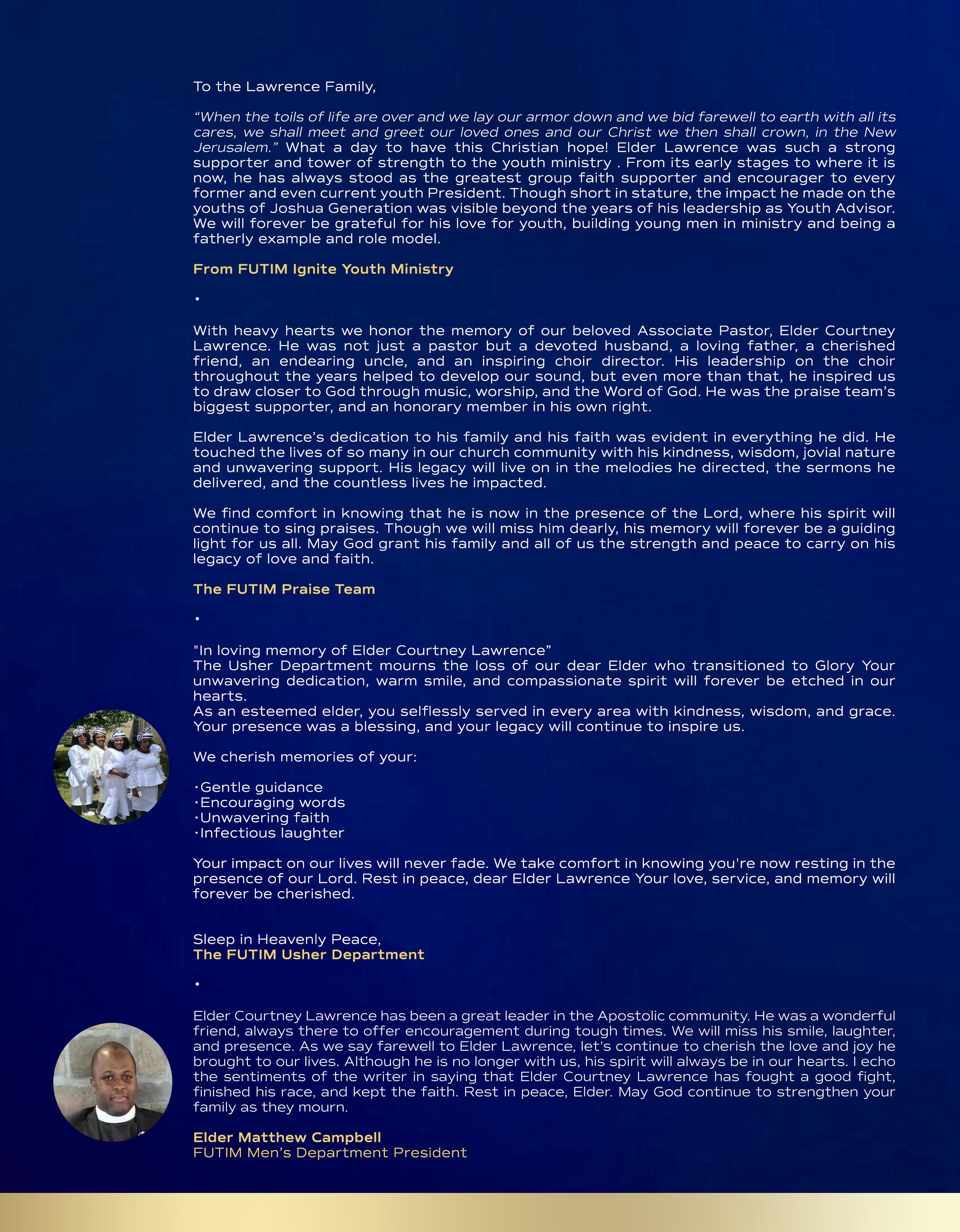 Elder Courtney Lawrence MEMORIAL KEEPSAKE by jhartistrypro - Issuu