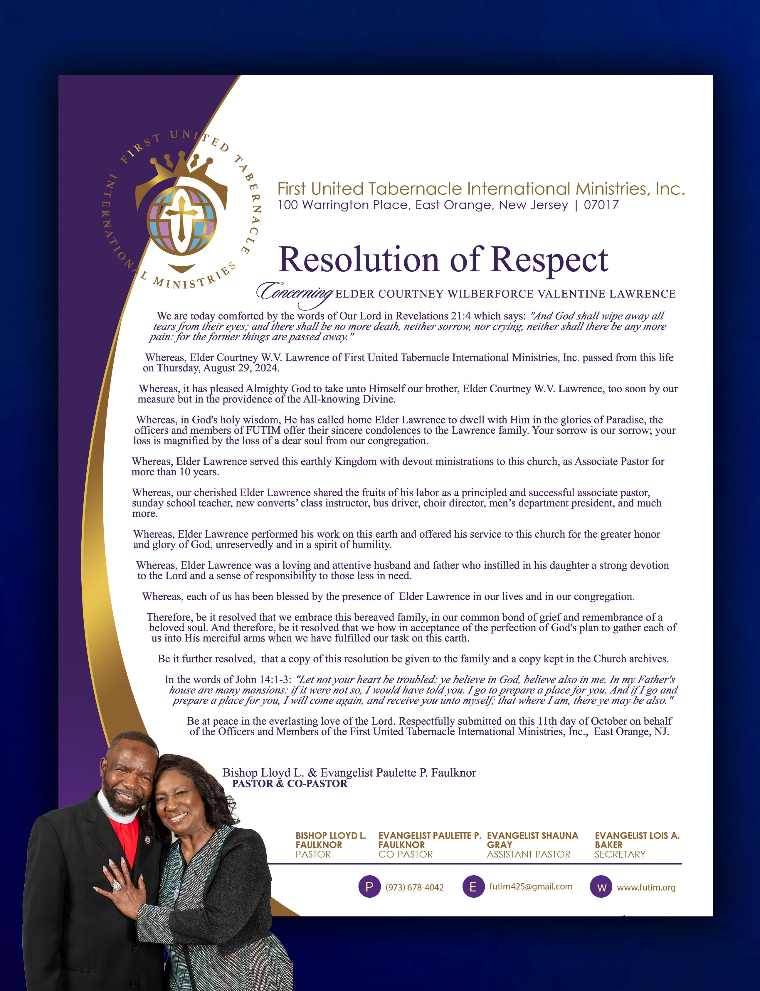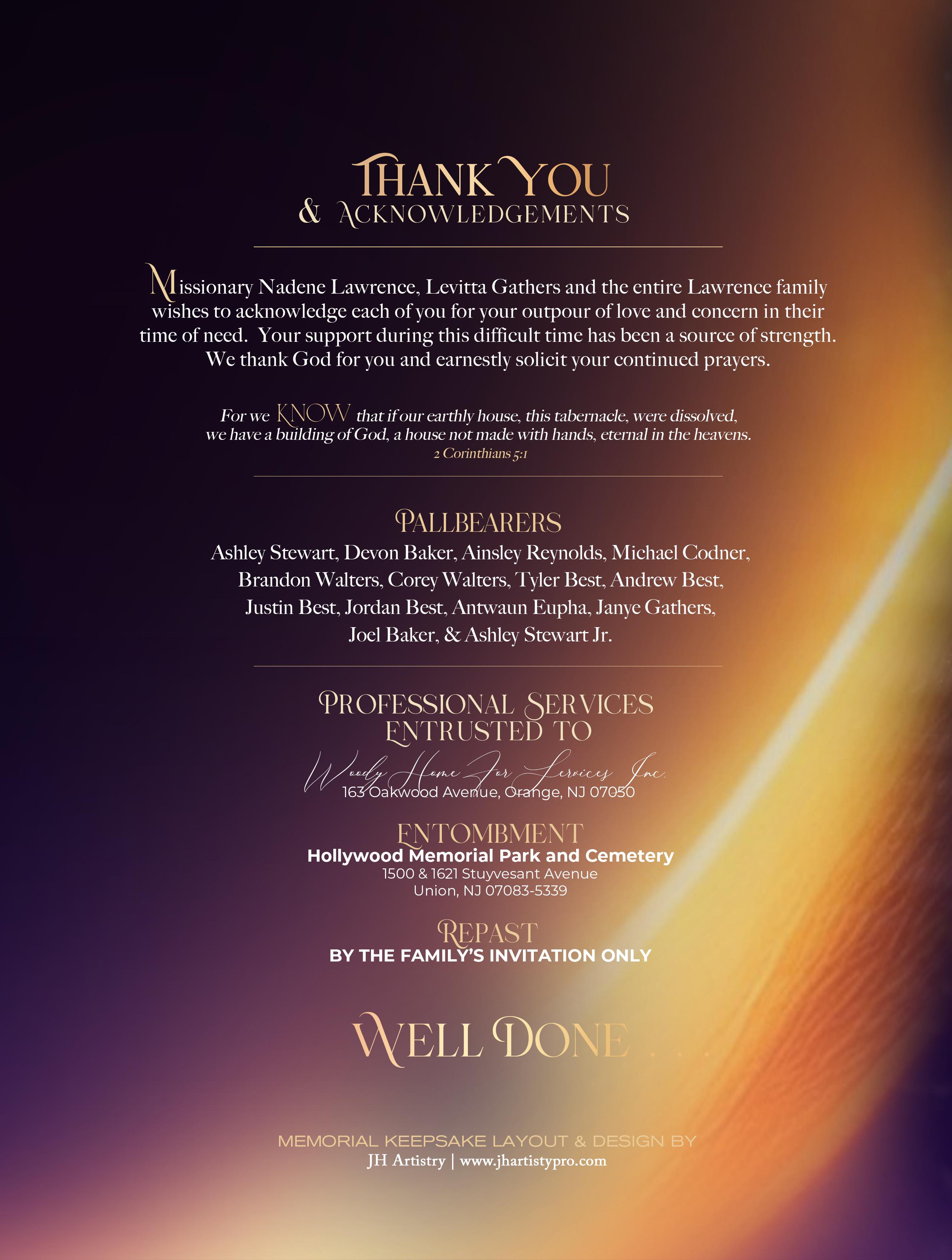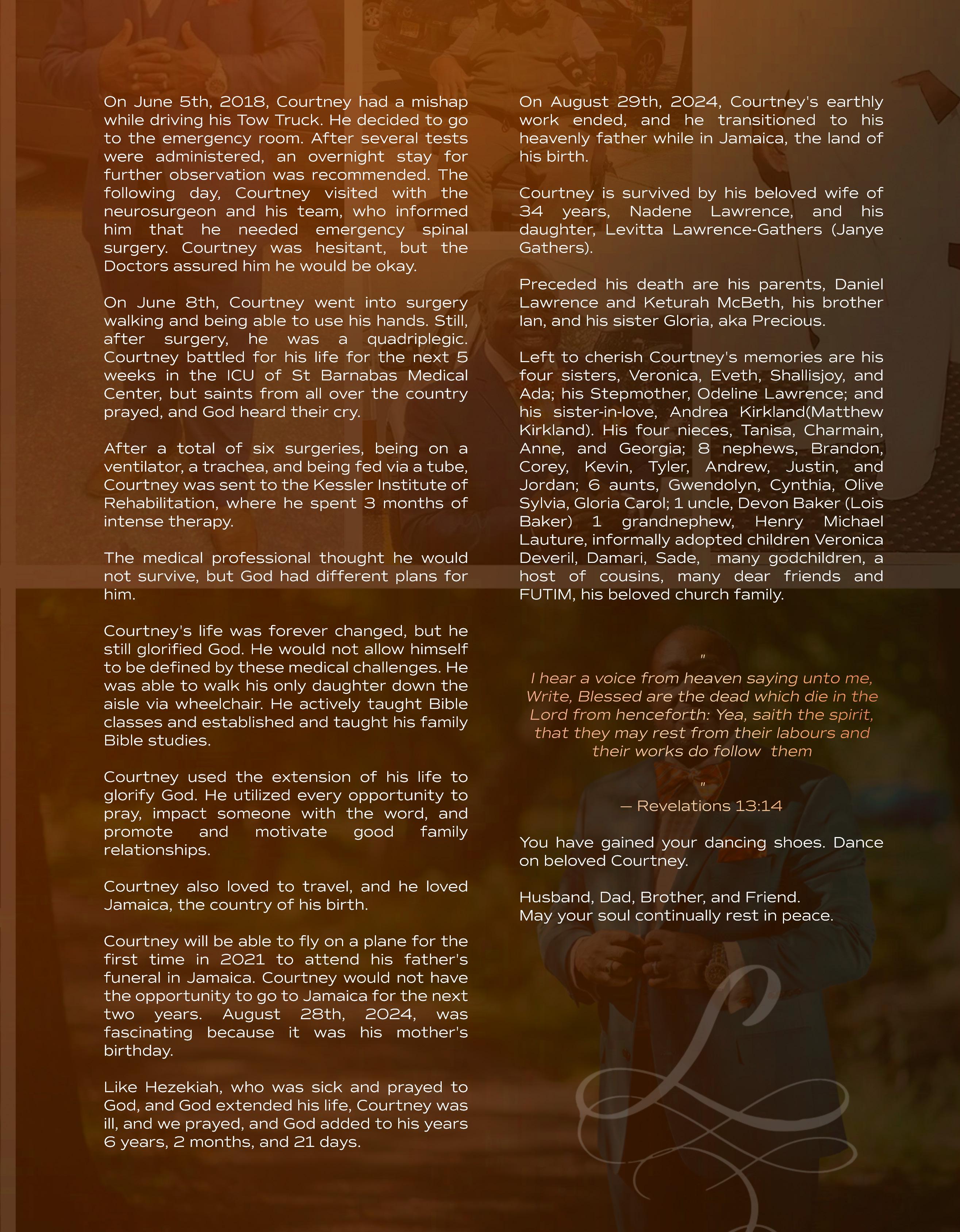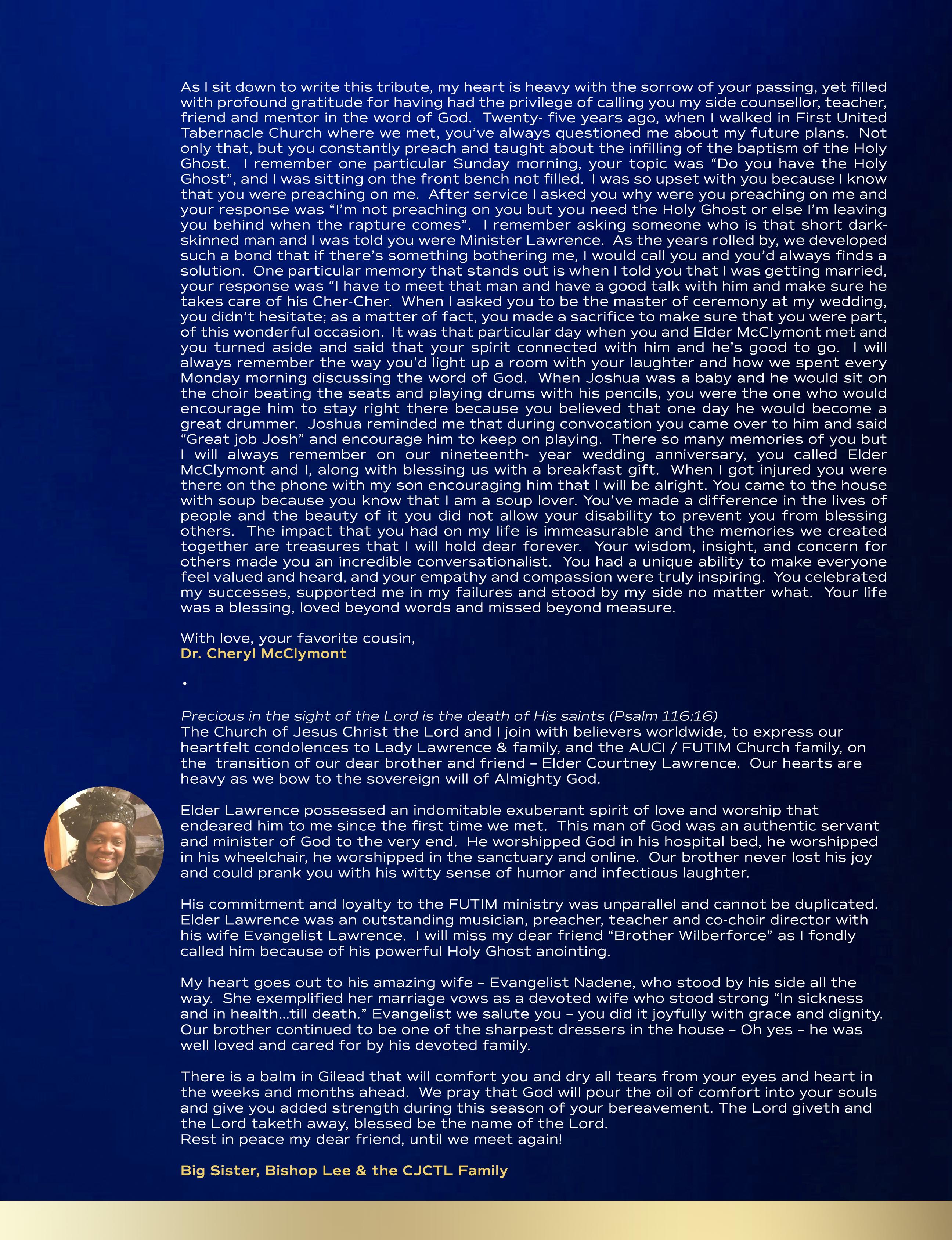 Elder Courtney Lawrence MEMORIAL KEEPSAKE