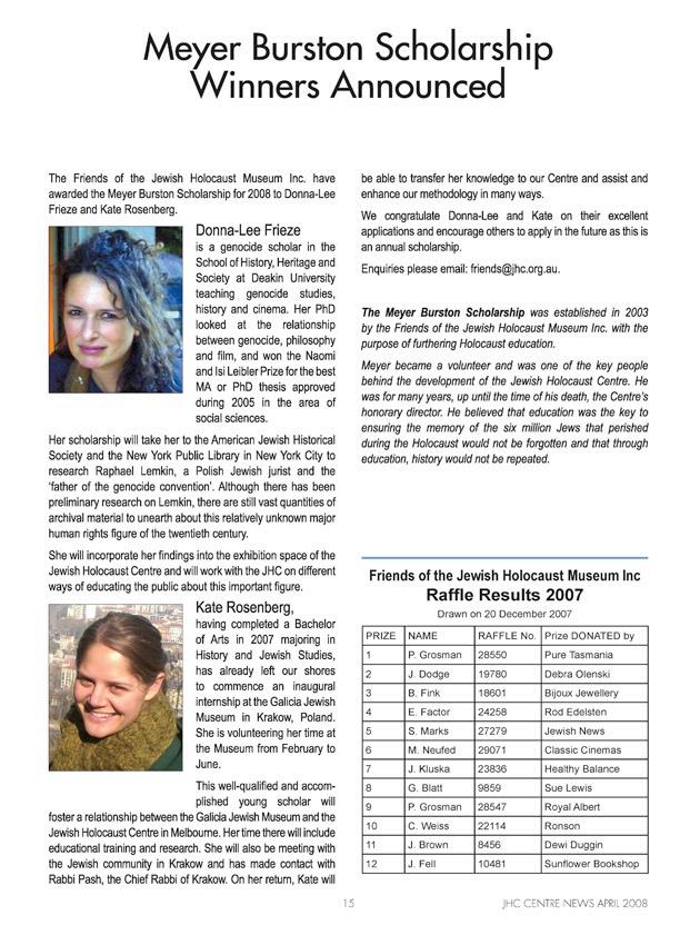 Centre News April 2008 by Melbourne Holocaust Museum - Issuu