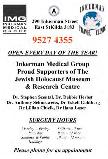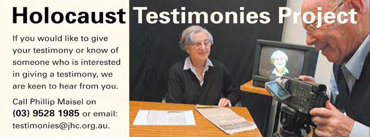 JHC Centre News 40 ADVERTISING If you would like to advertise in this section, contact Robyn Fetter at robynf@jhc.org.au or Tosca Birnbaum at admin@jhc.org.au t: (03) 9528 1985