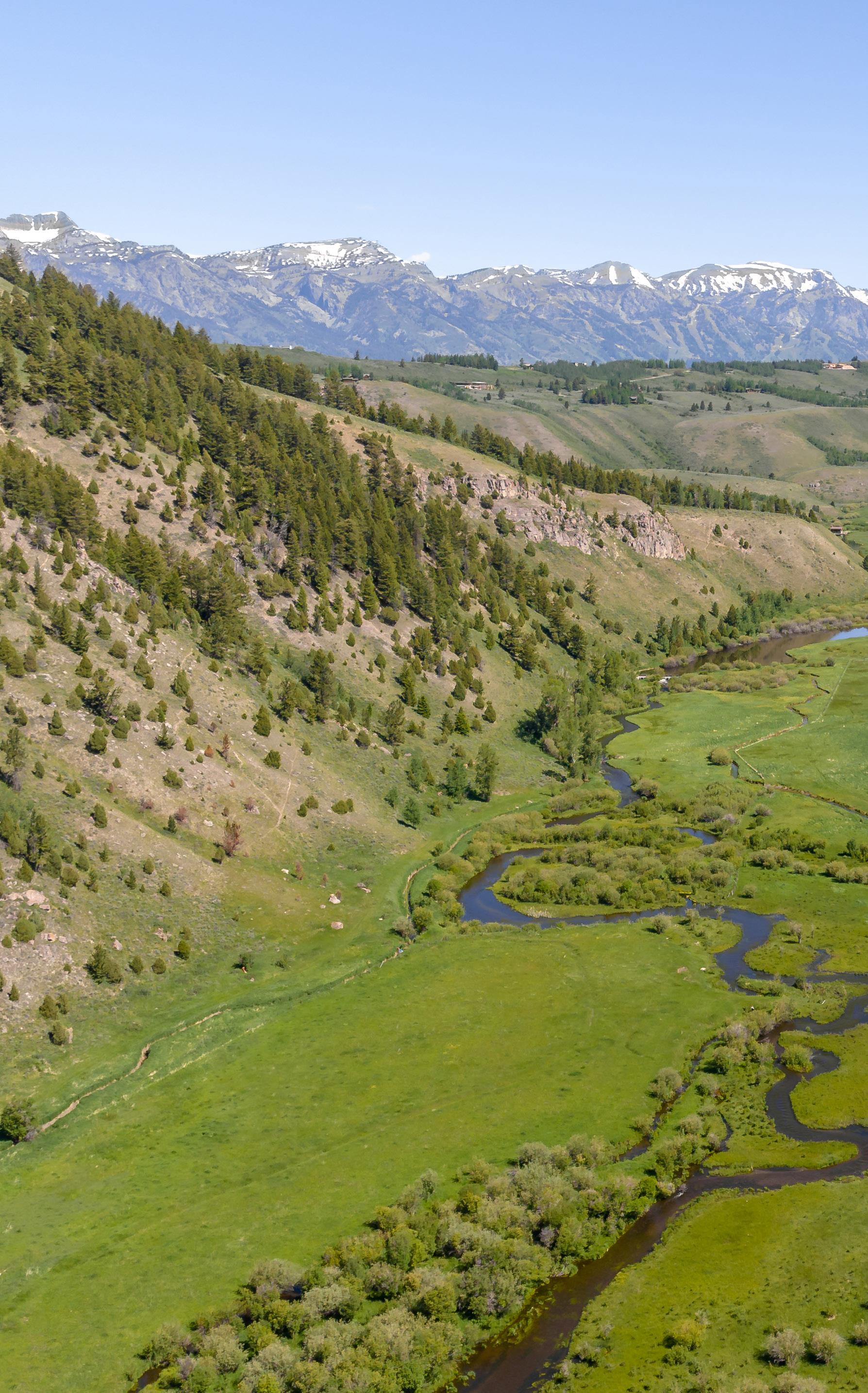 shaped by its idyllic ponds, lawns, and streams. Becoming an owner in Lake Creek Ranch affords the exclusive privileges of on-site horseback riding, private Snake River access and outthe-door trout fishing; all just a mere five minutes from the base of world-class skiing and the entrance to Grand Teton National Park.