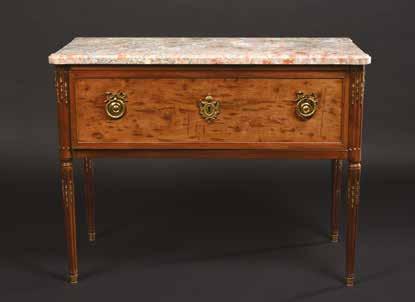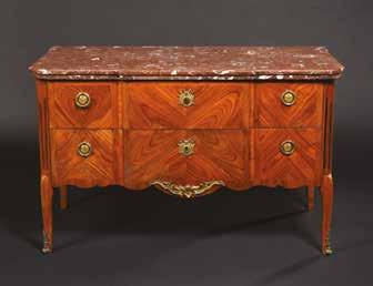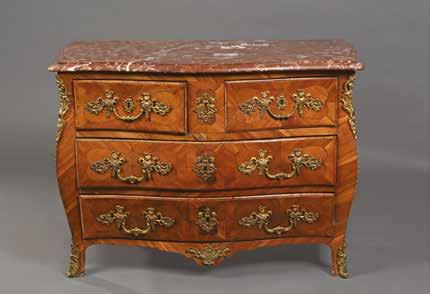 En forme de commode tombeau. La façade centrée d’un médaillon contenant une fleur.