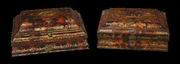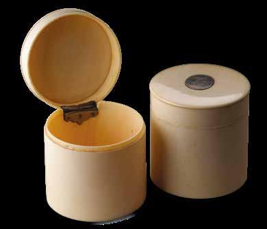 Le couvercle recèle deux compartiments cylindriques recouverts de cuir rouge à filets dorés.