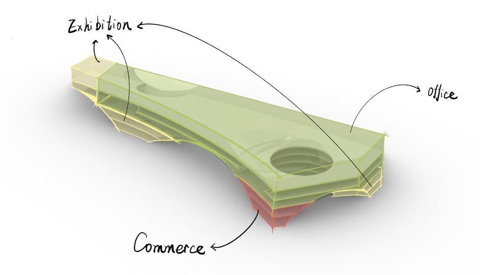 The Taizhou Youth Design Bay envisions a new cultural landmark for Huangyan, centred on the concept of a Recreational Business District (RBD). The project integrates design, science, technology, and culture, using space as a carrier and industrial agglomeration as its core. It aims to cultivate a design-driven ecosystem that attracts talent, fosters innovation, and drives industrial development. By leveraging technology and linking design, culture, and innovation, the scheme promotes smart, creative practices. Commercial and exhibition spaces are arranged around a central open area, while upper floors are dedicated to office spaces, creating a comfortable working environment. The interior features a through-height curved space that mirrors the exterior’s openness and enhances interaction between different office levels. Overall, the design balances functional efficiency with spatial experience, providing a platform for cultural exchange, industrial collaboration, and innovative practices, establishing a vibrant hub where creativity, technology, and business converge.