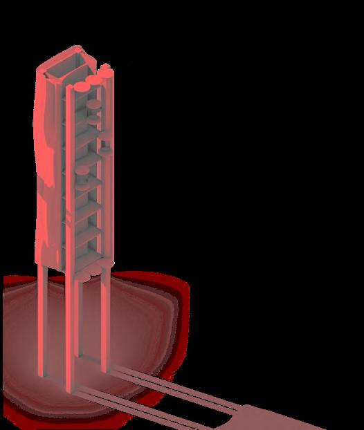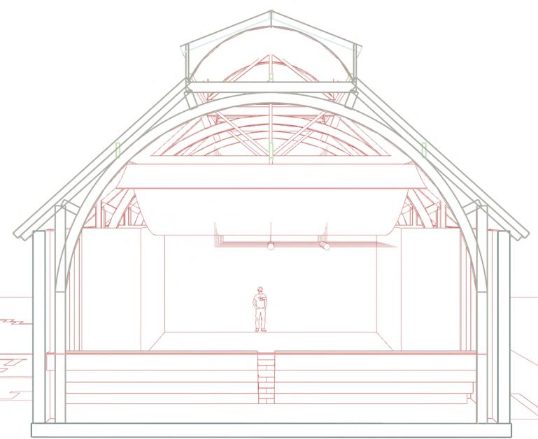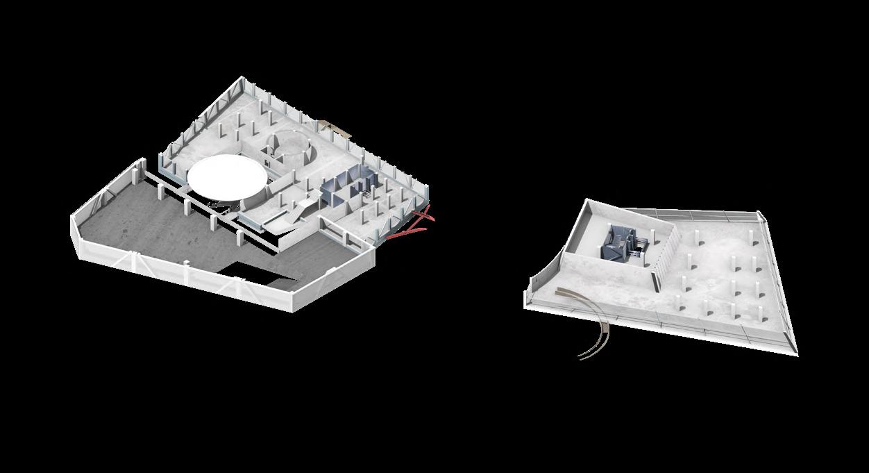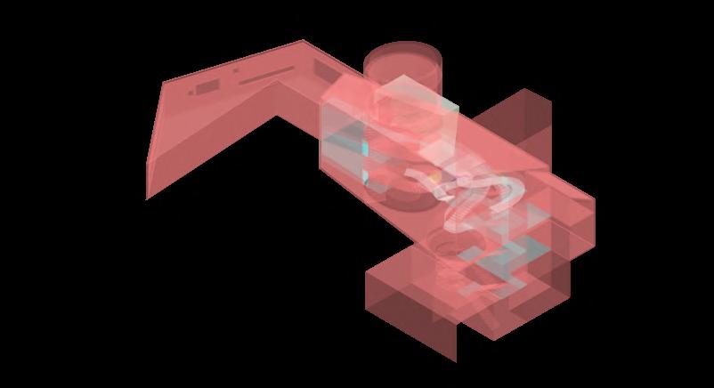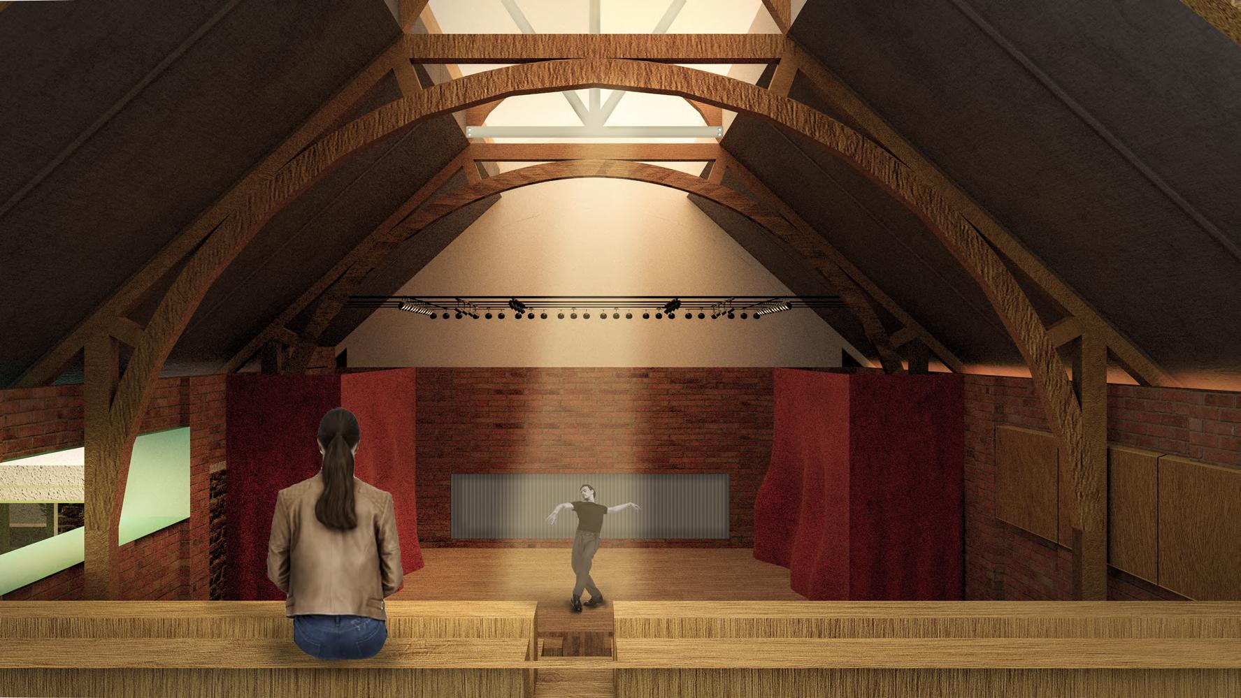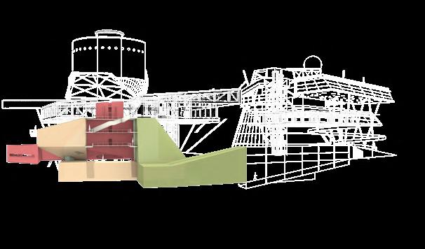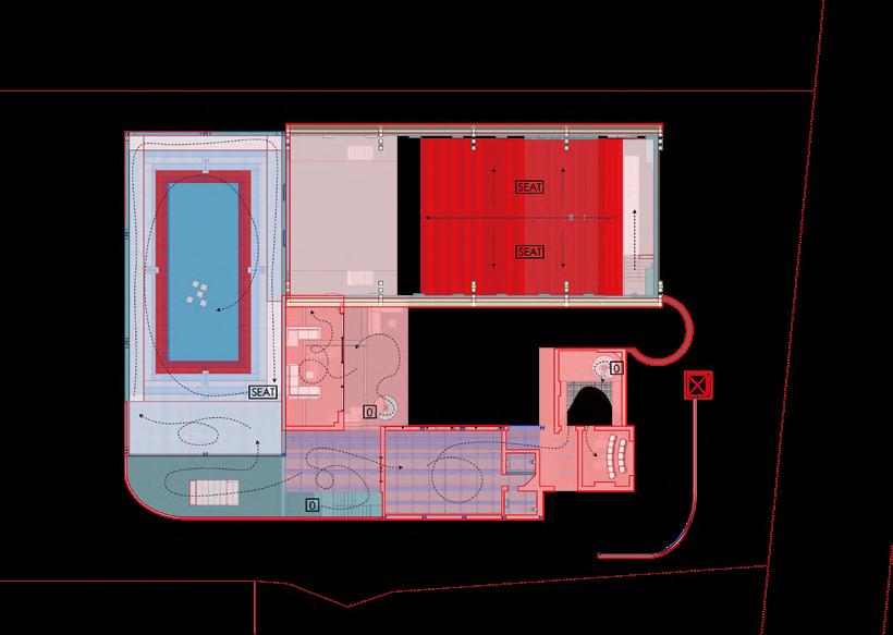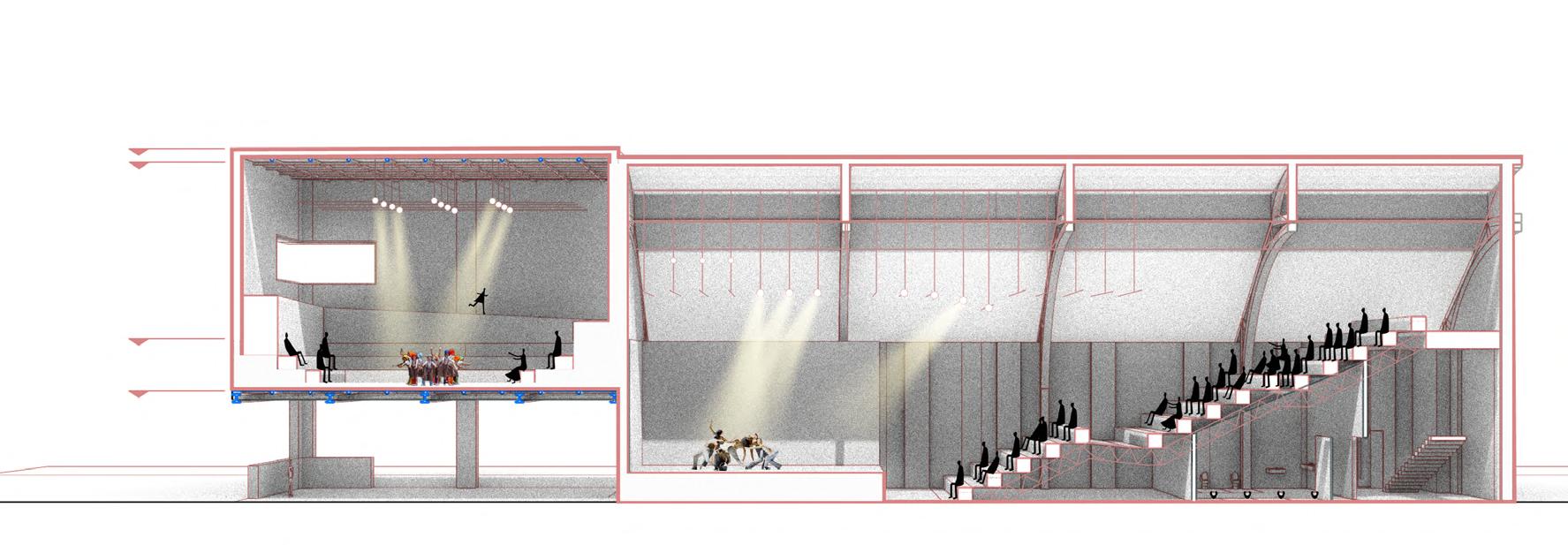 The main theatre welcomes children as the heart of the building, symbolizing birth and hope within its historical context. Serving as the entrance, lobby, and performance space, it encourages playful activities—performing, gaming, and creative exploration. Light is changeable, animating the space, while red brick, colourful fabrics, and modular, assembled seating create a lively, tactile environment. Abstract elements, like a bath and water, evoke cleanliness and health, while the central stage becomes a metaphorical nucleus for imagination and growth. This dynamic, interactive space fosters joy, learning, and communal engagement, celebrating childhood and the future potential of architecture through playful design.
