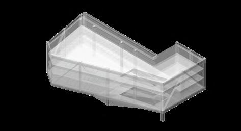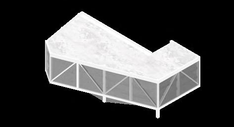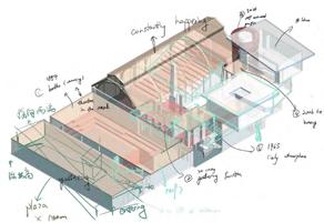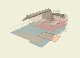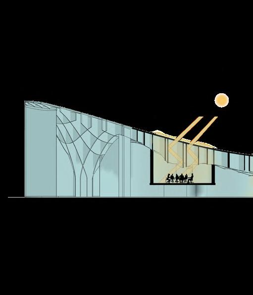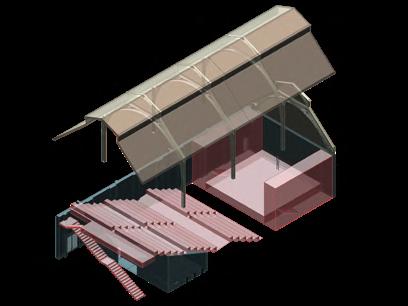This building has four separate small rooms that share a continuous glazing roof. To allow the roof to support itself, I chose a waffle-like timber lattice structure, which connects each individual space to the entire roof.
