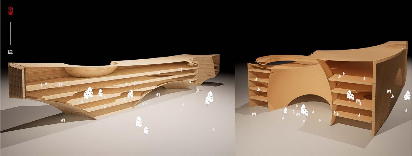 The spatial sequence of the building constructs a cognitive path from the city plaza through a public memory space to areas for reading and research, culminating in the archive core and extending to a rooftop city view. This progression organises experience from collective urban space to concentrated knowledge and back to an elevated perception of the city, framing a transition from city to memory, from memory to cognition, and ultimately returning to the city.
