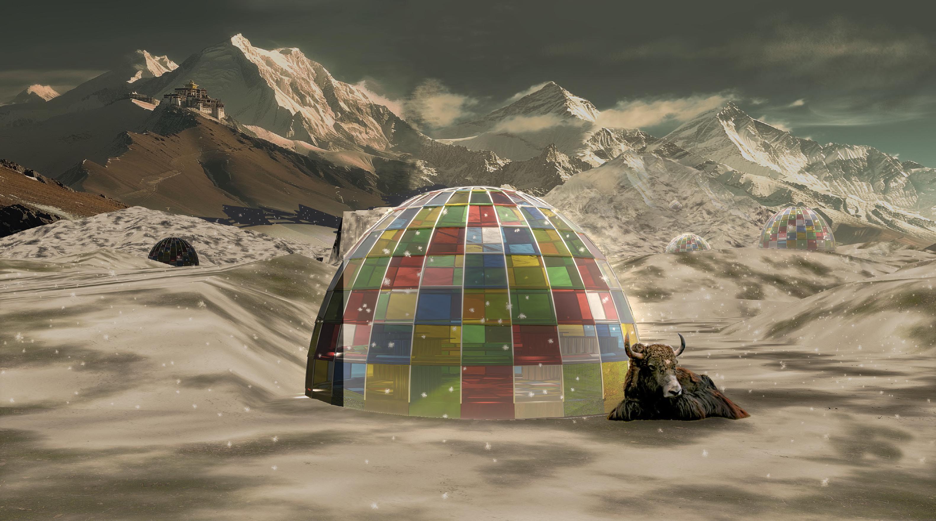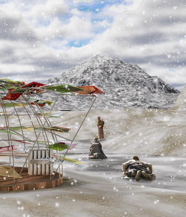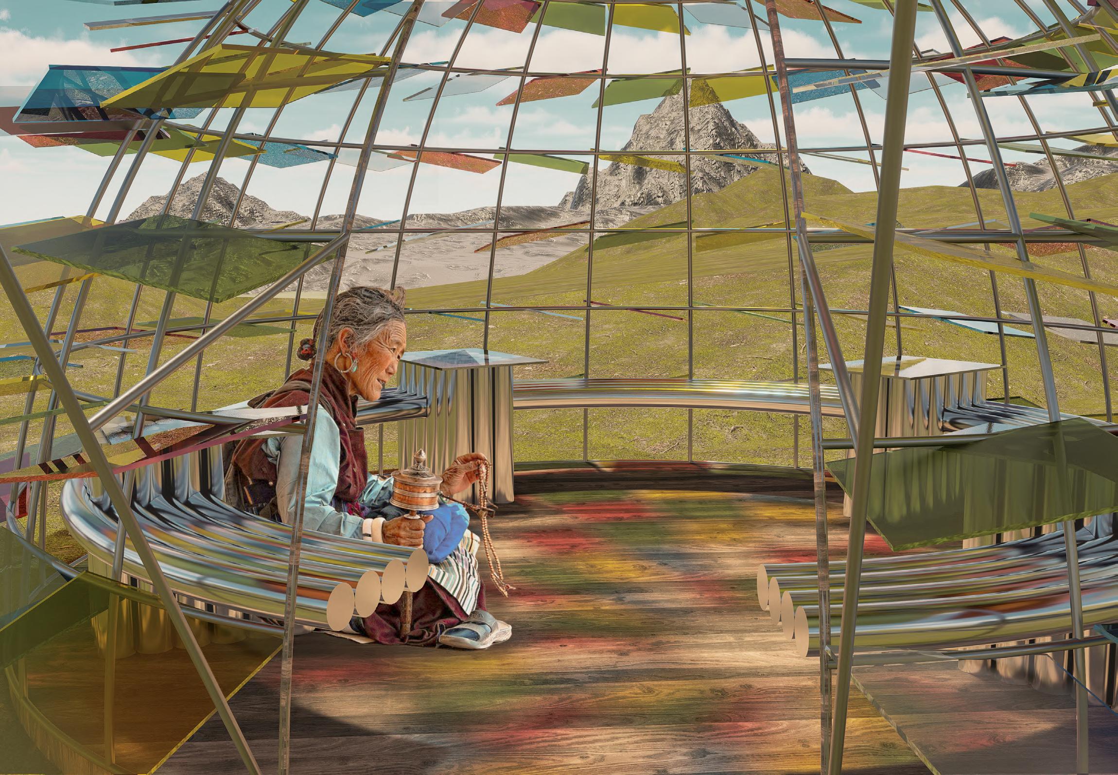 Our project is inspired by traditional Tibetan elements such as prayer wheels, mani stone pile, and prayer flags. This resting pavilion will provide a place where pilgrims can rest, sleep, and warm themselves, offering a sanctuary from the harsh conditions. Additionally, this facility will be available to tourists visiting the area, ensuring comfort and sustainability for all and promote the culture.