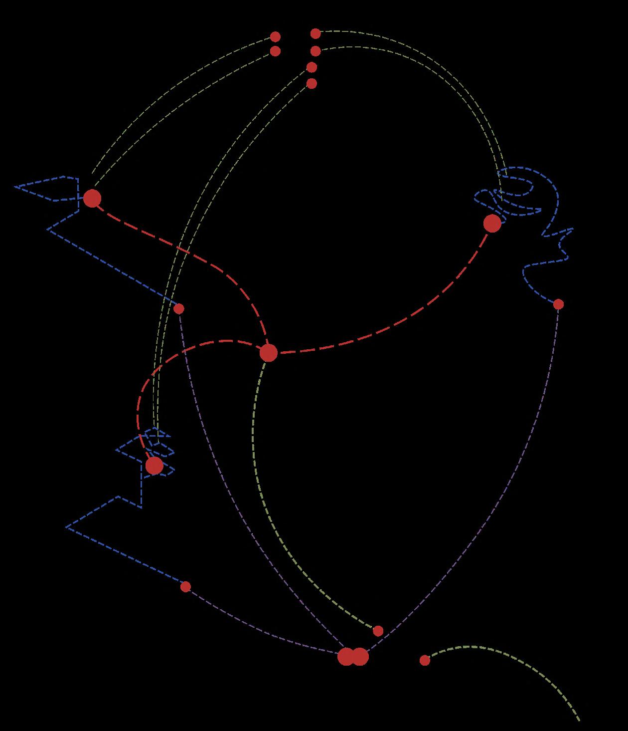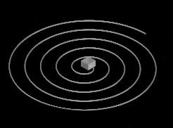 The exits of the three galleries converge into an interconnected double-spiral ramp system.