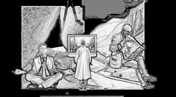 Visitors choose one of three thematic galleries based on their interests.