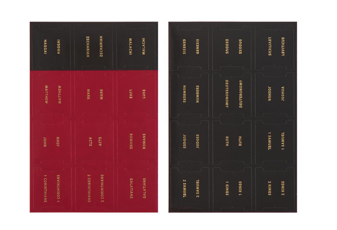 Two ribbon markers - black (Old Testament) and red (New Testament)