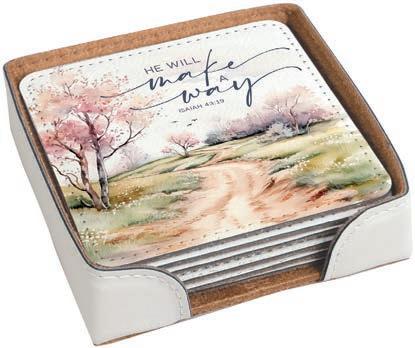 Introducing our Premium Leatherette Coaster Set - where style meets functionality and inspiration takes center stage. Crafted from high-quality leatherette material, our coaster sets offer durable protection for your surfaces and a touch of elegance to your decor. With the added benefit of full-color printing, these coasters feature four additional designs to our popular coaster line that will encourage your family and friends.