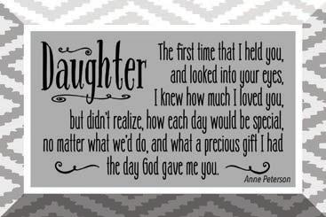 Elegantly adorned in subtle, yet colorful hues, our Everyday Plaques collection showcases a delightful array of title-specific verses and poems crafted by the talented Anne Peterson and Ron Tranmer. Each plaque arrives in its own box and has a convenient metal hanger and easel on the reverse side for easy display. Explore over 150 designs.