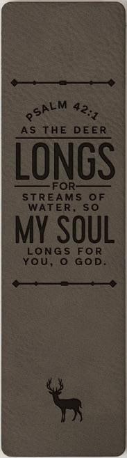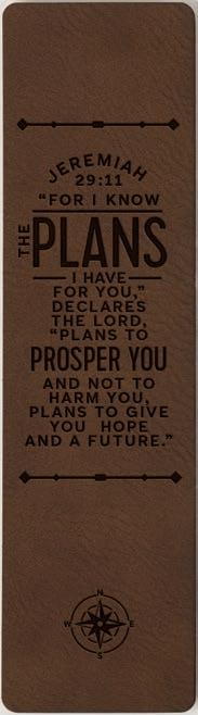 Our Leatherette Bookmarks are a timeless blend of practicality and inspiration. Each 1.5" x 5.5" unique bookmark is crafted from high-quality leatherette material and features a beautifully lasered verse for encouragement.