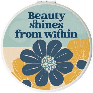 Leatherette compact mirrors with magnetic closure—regular and 2x magnified views for stylish inspiration on the go.