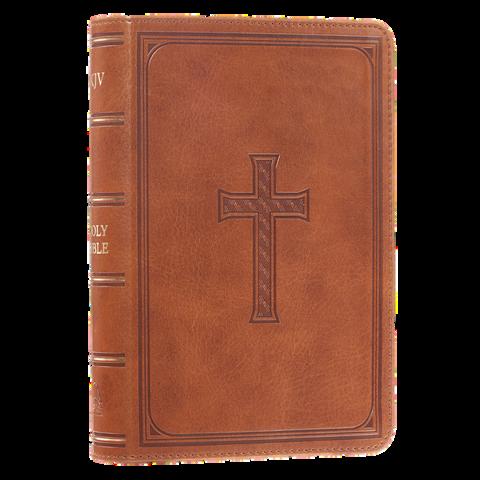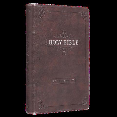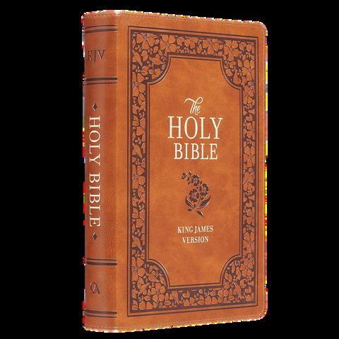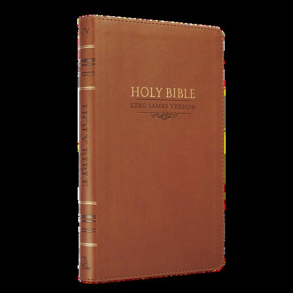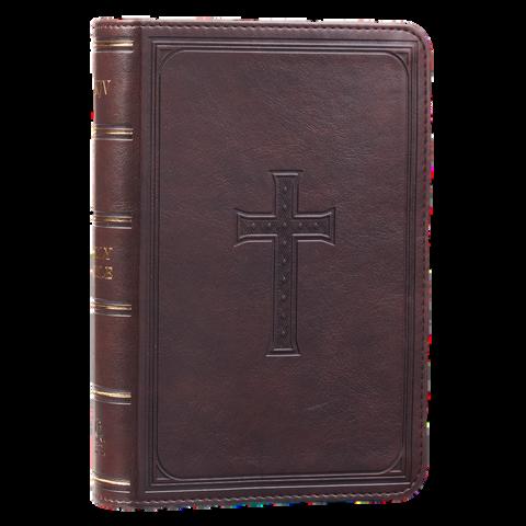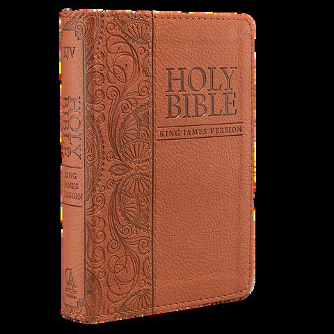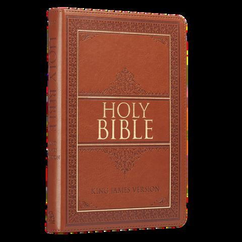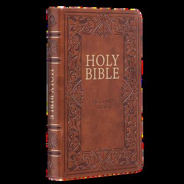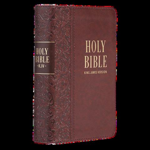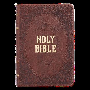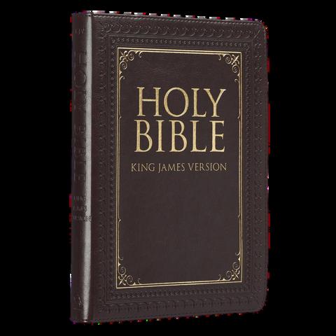 The beautifully poetic language of the classic King James Version evokes a sense of tradition and complements the cover design of the Medium Brown Faux Leather Compact King James Version Bible. This pocket Bible makes an excellent gift for a mother or grandmother that loves to travel with her own Bible.