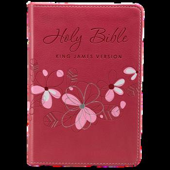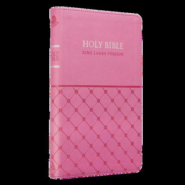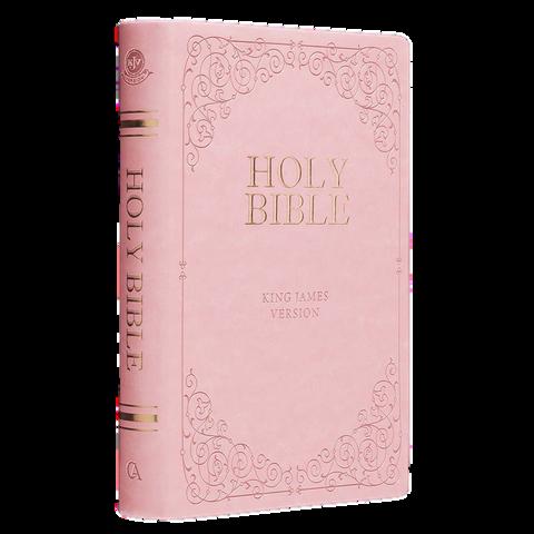 Thepresentationpageonthefrontofthe PinkFauxLeatherKingJamesVersionGift EditionBibleallowsyoutoaddresstheBible toafriend,sibling,orparentonabirthdayor specialoccasion.ItisagreatgiftBibletouse inaministryortohandoutonanoutreach.