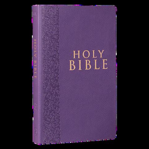 For those who prefer the feel of a paperback in their hand, this standard print volume features an accommodating layflat spine, a double-column format, a helpful thematic Scripture verse finder, and a one-year Bible reading plan. The Burgundy Softcover King James Version Gift and Award Bible is designed to be used as a gift for presentations and exceptional achievements. A handy presentation page allows you to mark the special occasion.