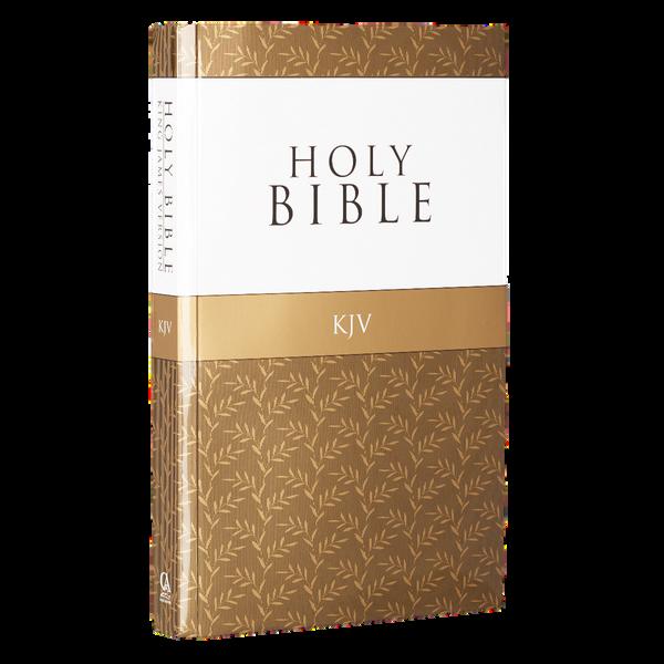 The Softcover King James Version Outreach Bible is a glossy softcover edition of the King James Bible with a variegated gold cover design at a very thrifty price.
