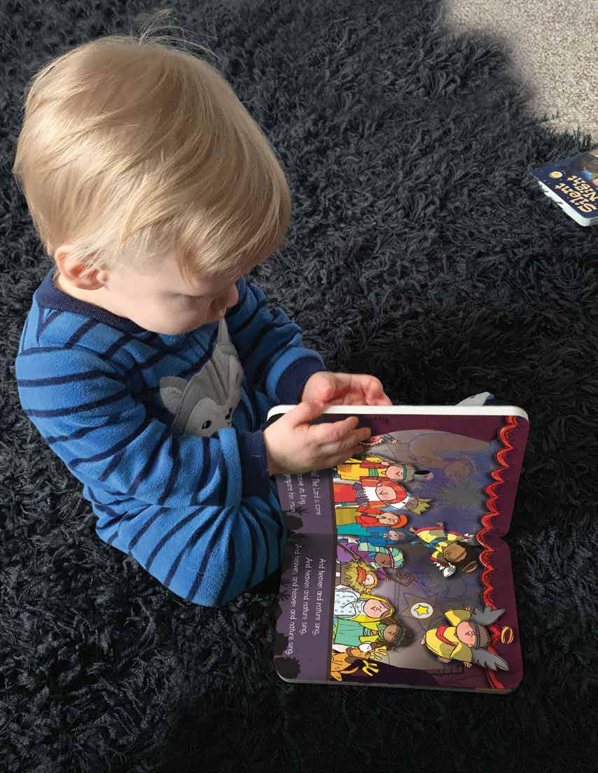 O Little Town of Bethlehem celebrates the birth of Jesus through the joy of a beloved Christmas carol. As you listen to the carol, you can read the ancient story of the first visitors who traveled to Bethlehem to worship the Christ Child. Inspired by this traditional carol, O Little Town of Bethlehem features new rhyming verses that give meaning to the wonderful traditions of Christmas and a caroling choir that sings the song. The combination of the children’s choir, rhyming verses, and charming illustrations will captivate and delight young children.