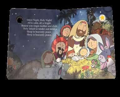 The song, “Silent Night,” was composed in 1818 in Austria by Mohr and Gruber. It remains one of the most popular Christmas carols of all time. Silent Night commemorates the birth of the Christ child in humble surroundings. Inspired by the traditional carol of the same name, the lyrics in this version of “Silent Night” feature new rhyming verses that give contemporary meaning to the wonderful traditions of Christmas. It also features a caroling choir. The combination of lights, music, and illustrations will captivate and delight all young children.