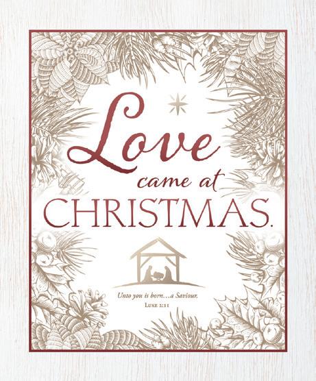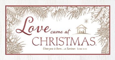 Inside text: Onlyonegifthasthe powertotransformourlivesforever. Maythelife-changingloveofJesus makeyourChristmasunforgettable.