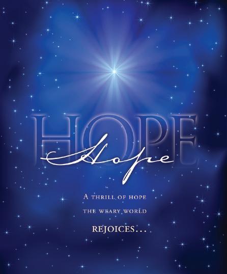 Inside text: Hopeisbornanewin theheartsofthosewhobelieve. MayGodblessyourlifewith answeredprayersandgiftsof encouragementatChristmasandin theNewYear.