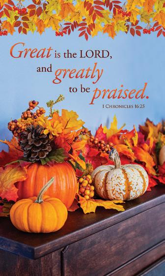 THANKSGIVING BULLETINS & MATCHING SETS THANKSGIVING BULLETINS & MATCHING SETS 3 AP2183 730817371559 Bulletin $8.99/100 AP2183L 730817371566 Legal Bulletin $9.99/100 AP2183LH 730817371573 Letterhead $8.99/100 AP2183E 730817371580 O ering Envelope $9.79/100 Give Thanks Col 3:16 NIV U4351 730817370859 Bulletin $8.99/100 U4351L 730817370866 Legal Bulletin $9.99/100 U4351LH 730817370873 Letterhead $8.99/100 U4351B 730817370897 Bookmark $3.89/25 U4351E 730817370880 O ering Envelope $9.79/100