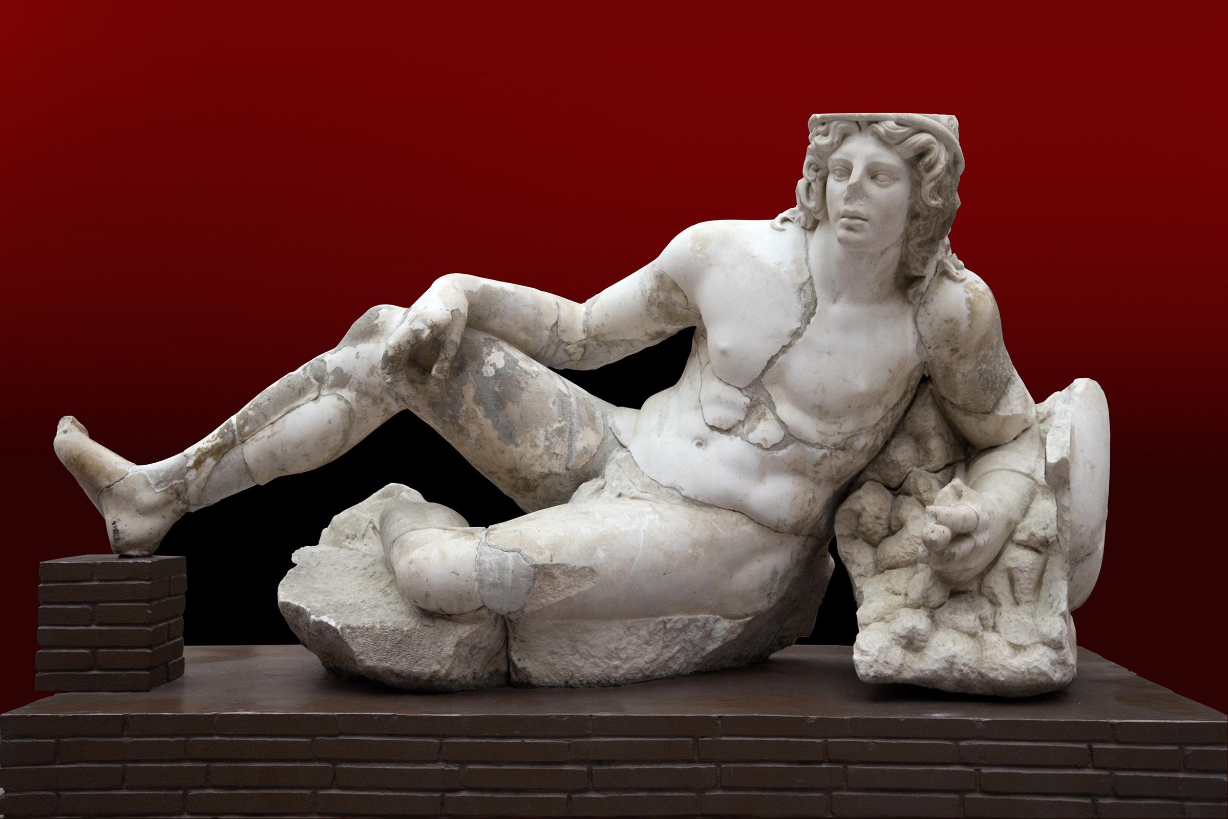 century A.D. Roman work of art in the Ephesus Museum in Turkey, the display is quite nice but the background is very distracting. In the corrected version below, I added a gradient of