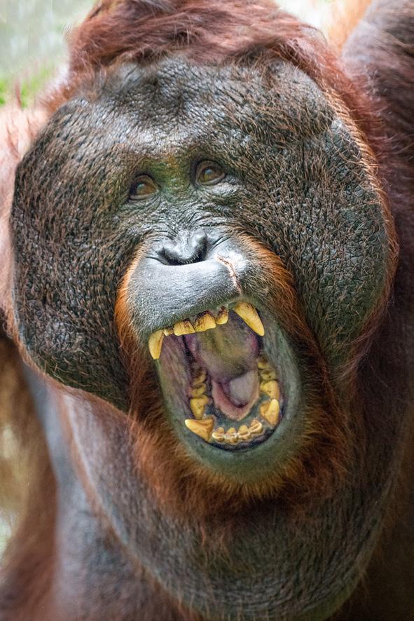 But I was totally blown away by the image be low. I took this shot of a cape buffalo from a blind at dawn in South Africa on a recent photo tour there. I replaced the sky in postprocessing, but the original capture had been done in extremely low light. I was using a long lens and wanted a shutter speed that would freeze the movements of the animal, so I used 1/500. At f/7.1 (the maximum aper ture on the 100-500mm Canon lens when set to 500mm), the ISO was forced to an unbe lievable 40,000! I’d never gone this high be fore, but if I had slowed the shutter to reduce the ISO, I risked getting blurred pictures.