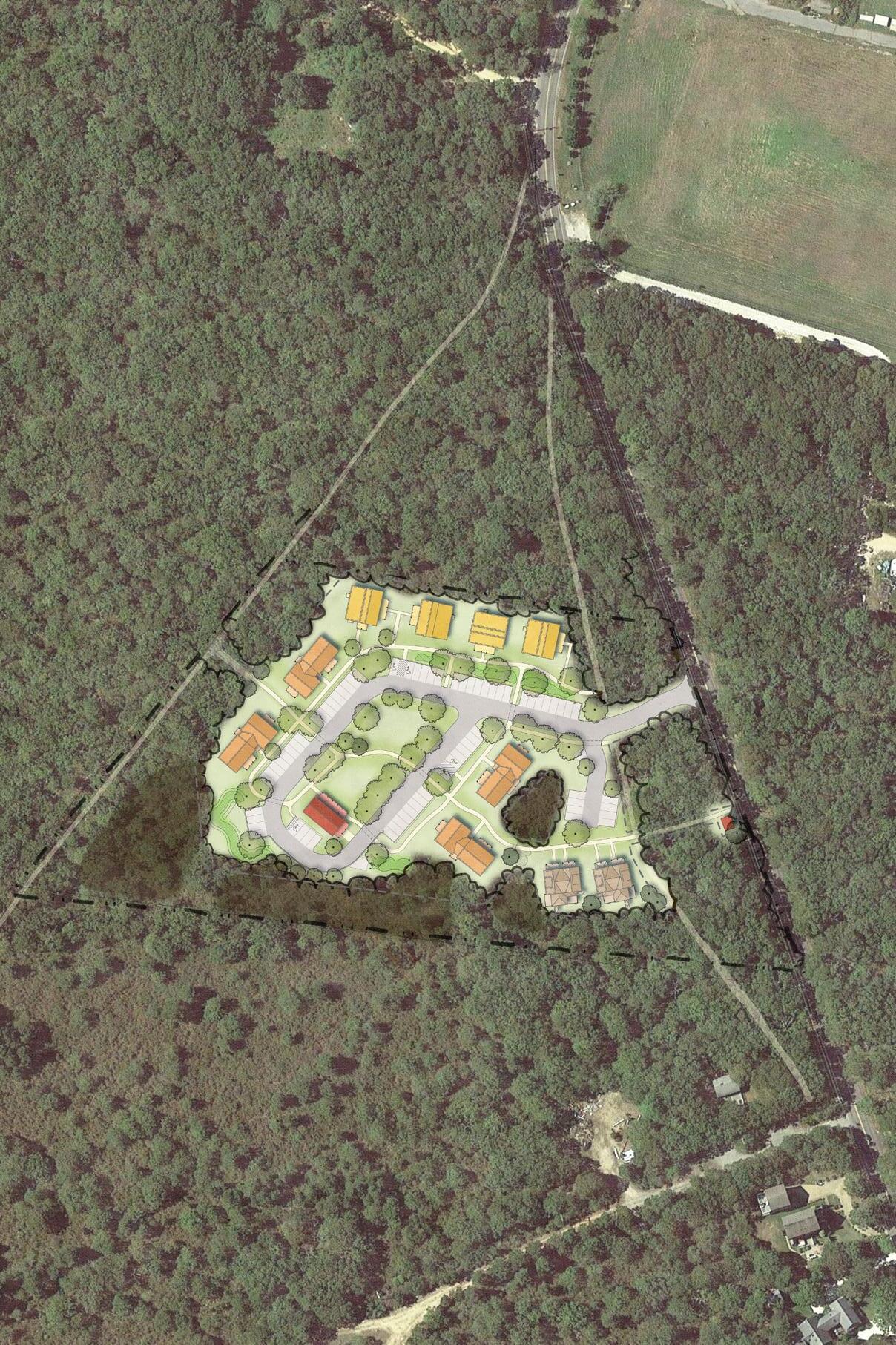 The site design of Meshacket Commons carefully protects natural habitats and open space while creating a pedestrian neighborhood. A large common green is a visual center of the neighborhood, equipped with a large communal building, mail kiosk, and porch for outdoor gathering. The building designs are inspired by the mass and scale of the vernacular architecture of Martha’s Vineyard.