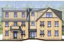 The site design of Meshacket Commons carefully protects natural habitats and open space while creating a pedestrian neighborhood. A large common green is a visual center of the neighborhood, equipped with a large communal building, mail kiosk, and porch for outdoor gathering. The building designs are inspired by the mass and scale of the vernacular architecture of Martha’s Vineyard.