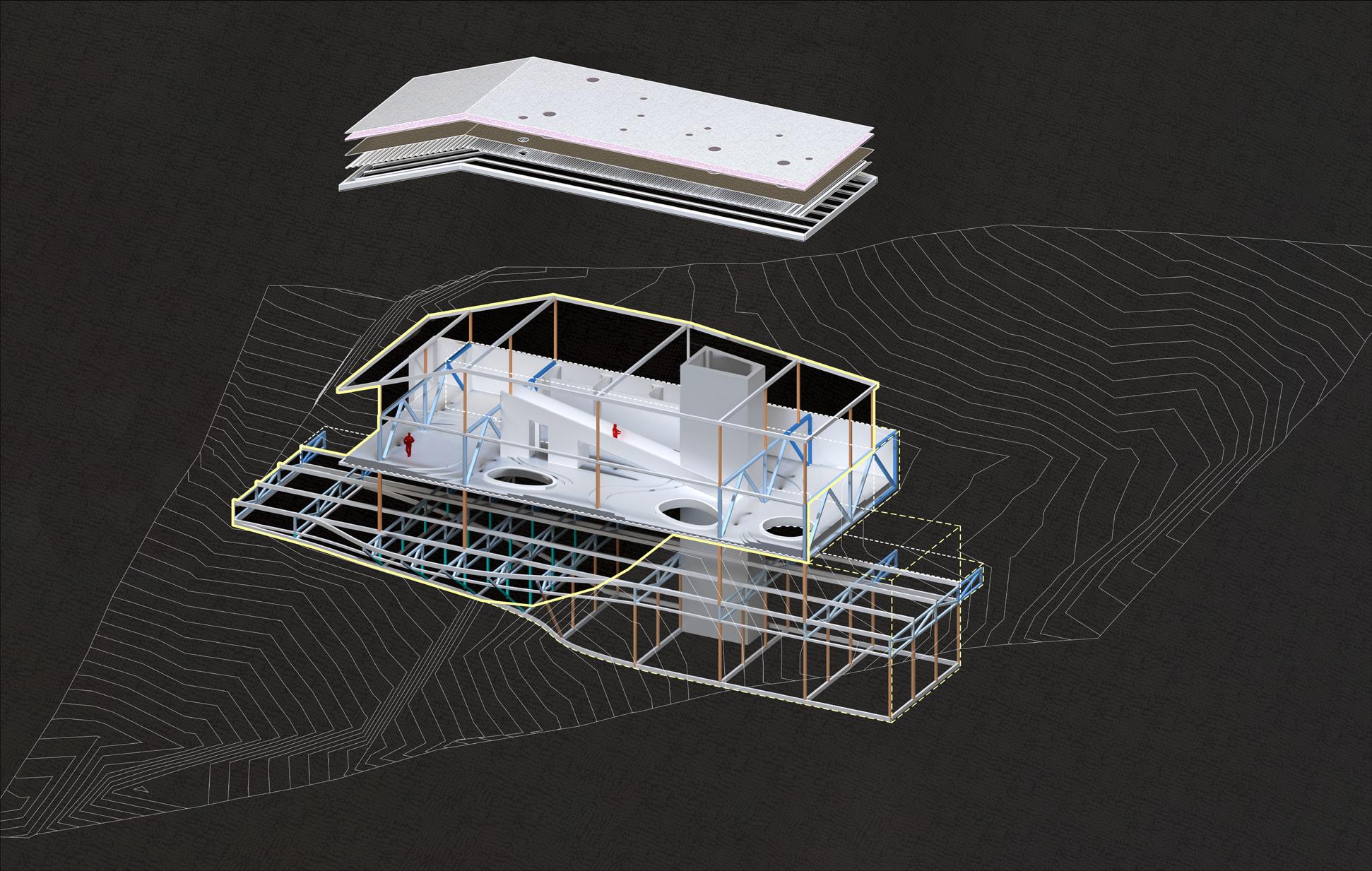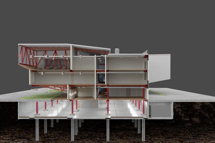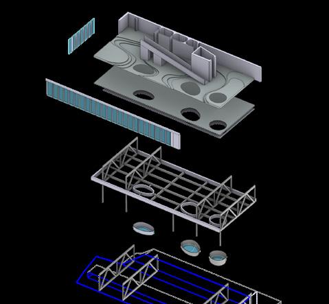 HSS 12x36 , Bracing HSS 12x12, Height: 15’ HSS 8x8 , Bracing HSS 6x6 Height: 4’ Steel Joist HSS 12x16x3/8 @ 9‘ O.C. Pressure Tension Outside the rock Inserted into the rock Axonometric diagram of Structural System Perspective