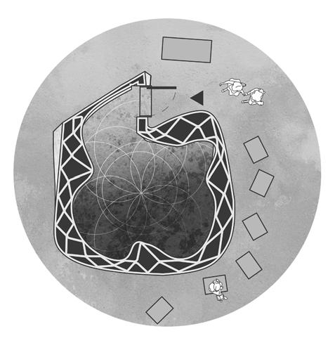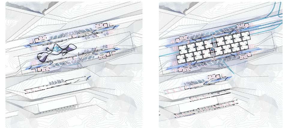 alternated sets of regulations, which are based on two distinct approaches, both sets concerned with daylight at street level, this structure vertically grows by overlapping a macro-structure obtained by three floating shells. In this case, new programs are enlightened,such as offices and residential (hotel), which. in accordance with urbanistic analysis, their presence is truly argued.
