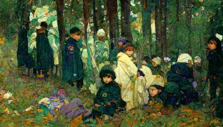 AI generated images based on the phrase „Ukrainian children hiding in the forest .....Als“ were converted into data that subsequently informed the print paths. We used different data and images for each panel. We thus verified that it is quite easy to have each panel as an original, which supports the basic thesis of 3DCP as it is a so-called mass customization.