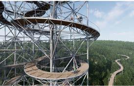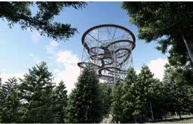 The slide object is a new type of tower allowing an unrestricted 360° view of the horizon. At the top, the tower is adorned with a ring with an inner diameter of 54 meters. Beyond this ring, there are no structures obstructing the panoramic view, except for safety lighting for aerial navigation. The tower incorporates various attractions such as slides, sleeve attractions, and more. An steel stairway and an elevator shaft, designed for evacuation purposes, are located adjacent to the tower to ensure safe egress of individuals.