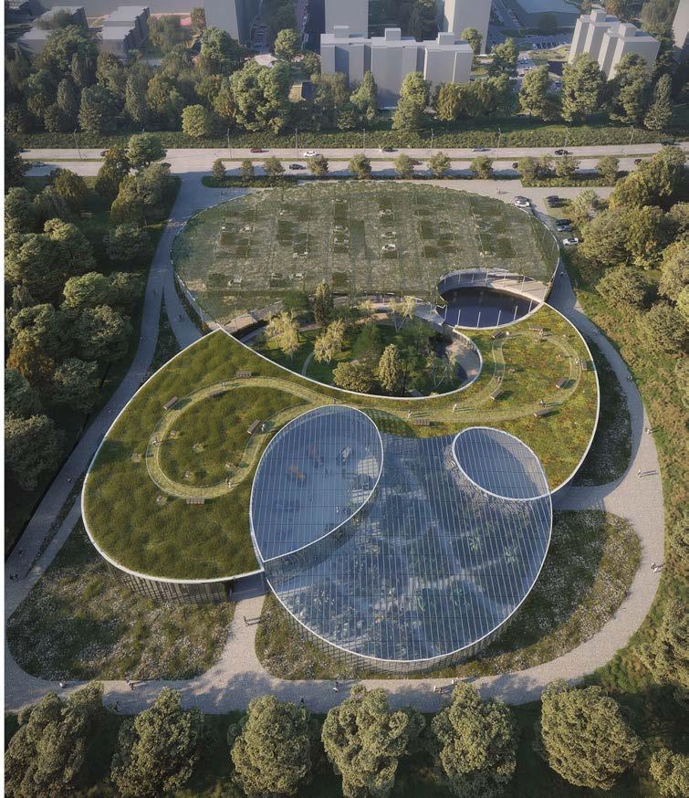 The building is designed for the city of Prague and is based on Prague inspiration. The design is simple, drawn in one line. This line should be memorable and should forever characterize the Botanical Garden. We have designed an experiential house that will encourage repeated visits. The building is designed as economical, both in its design and in its operation. Dominate in it and its surroundings will be mainly plants.