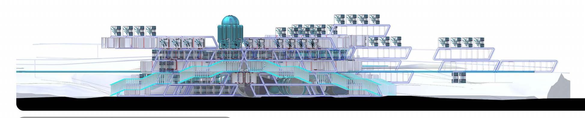 In our pursuit, we seek novel methods of organizing these diverse systems within a unified territory. We aspire to redefine modes of communication, striving for optimal integration and synergy. Our aim is not merely to construct physical edifices, but to orchestrate a harmonious circulation of these systems within the urban fabric. They must coalesce into a singular entity, functioning as a cohesive complex.