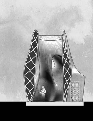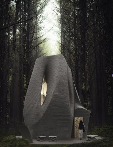 The Chapel of Convergence seamlessly integrates cuttingedge 3D printing technology to realize an optimized architectural form. Inspired by the fusion of Gothic and Baroque styles, particularly influenced by Jan Blazej Santini’s visionary designs, this nnovative approach allows for the creation of intricate, yet structurally optimized shapes. Through meticulous digital modeling and fabrication, the chapel embodies a harmonious blend of tradition and contemporary design, symbolizing humanity’s journey towards spiritual enlightenment amidst the evolving landscape of modernity.