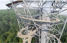 The boarding platform for the footbridge is situated near the upper station of the cable car and the newly designed restaurant. From there, the connecting footbridge leads to the entrance structure and extends to the tower object.