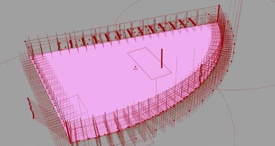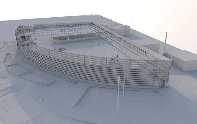 The limit of the possible building area was defined and subsequently the points in space defined the ramp curve. Optimization was important to ensure underpasses and appropriate ramp slopes. Thanks to that it was created the very artistic shape of the whole mass of the object. The parking geometry was then generated along with the curve home. The escape cores were suitably positioned to meet the required distances. Given geometry was then analyzed statically. Parking spaces have been digitally positioned to avoid columns and the minimum parking width was maintained.