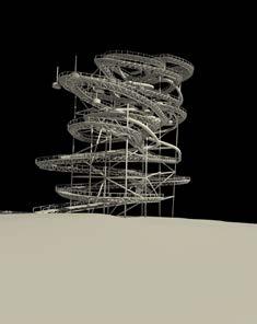 ThedesignofthesecondtowerofthePilsenChurchof St. Bartholomew is based on the geometry of the existingtower.Theanalysisofgeometryshowsthebasic positiononthesquare,whichisoffsetintheledge.The base of the roof is built on an octagon and the top of the tower is pushed to the point. The height of the individualgeometricformationsisplacedinaccordance with the existing template. Between the layout control objects / diagrams /, we generate a new control surfacetomaintainthelongitudinalandtransverseviews. The basic reasoning assumes the tower as a skeleton structure derived from a gothic model without a material filling. This creates a discussion between the two towers. Functionally, there is no need to load the assignment. Lightweight steel frame construction is applied by components to the generated control surface.Thecomponentisbasedonasquareandrotated hexagon with rounded edges. The number of components is optimized in the U-axis to 3 and in the V-axis