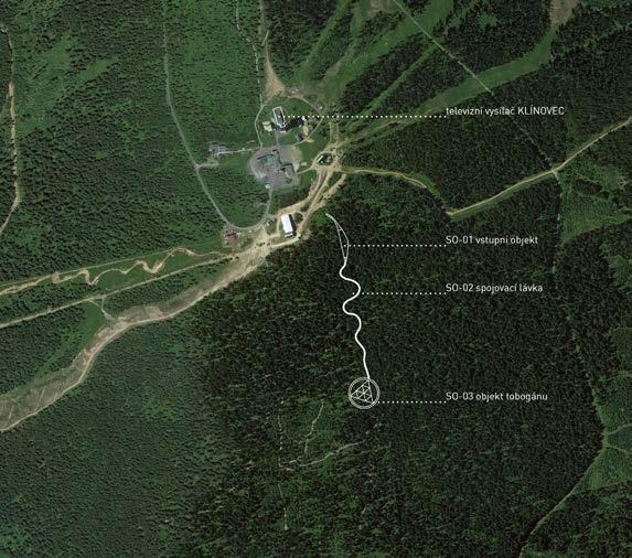 The site is located beneath the mountain ridge of Klínovec. The structure comprises several components: Entrance Structure (SO01), Connecting Footbridge (SO-02), and Slide Object (SO-03).