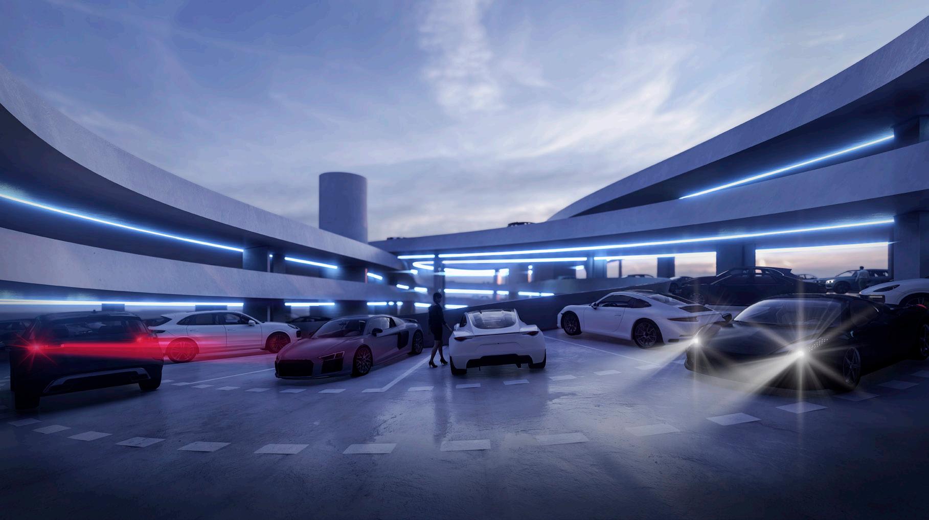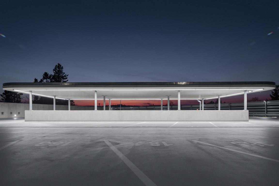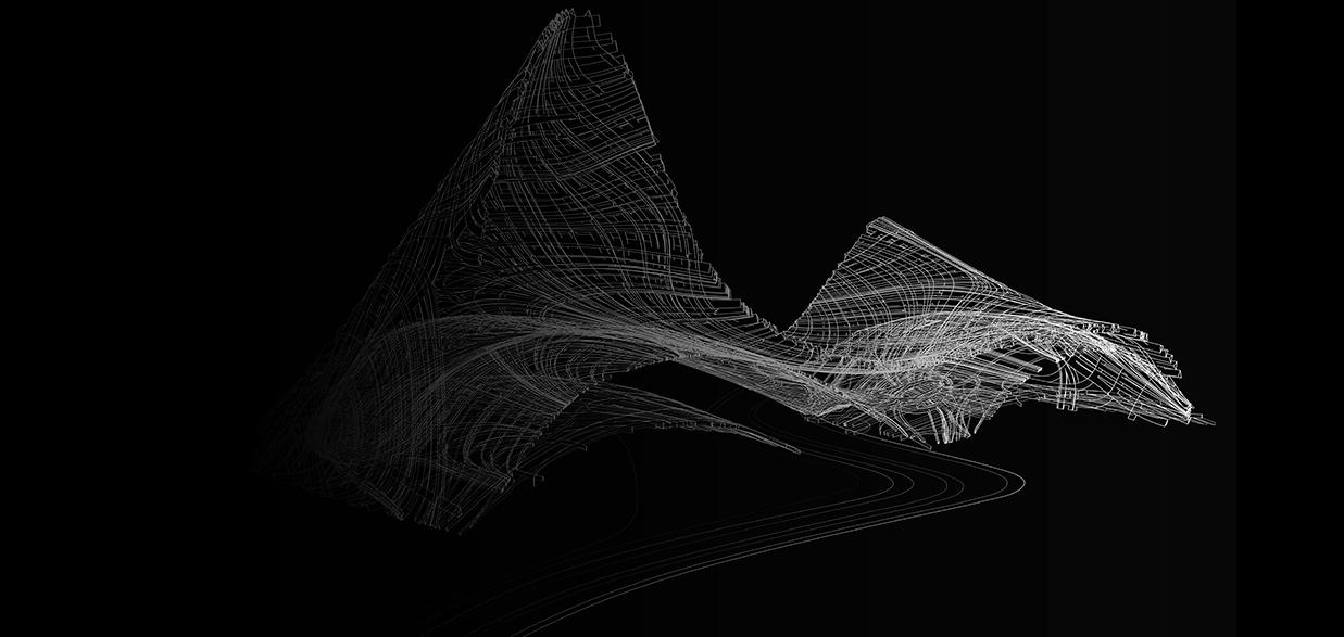 2. how it affects its surroundings? We came to the conclusion that the essence of a parking house is a simple road and parking slots. The resulting open structure of the “track” does not close and fill the space with impenetrable objects, but naturally coexist with the place. The resulting art form consciously refers to movement, mobility, speed and semiotically refers the importance and program of the object. As a result, it is clearly read and positively complements the urban structure the context of the place where its openness communicates with the opposite park, its graceful curves guides the pedestrian and its cantilever pull communicates with the Steven Holl Opera building.