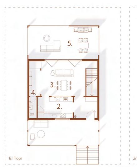 37 1. entrance 2 kitchen 3 dining 4 bathroom 5. patio 6 yog a room/living room 7. bedroom 8 greenho use/multi-purpose space 9. atrium legend